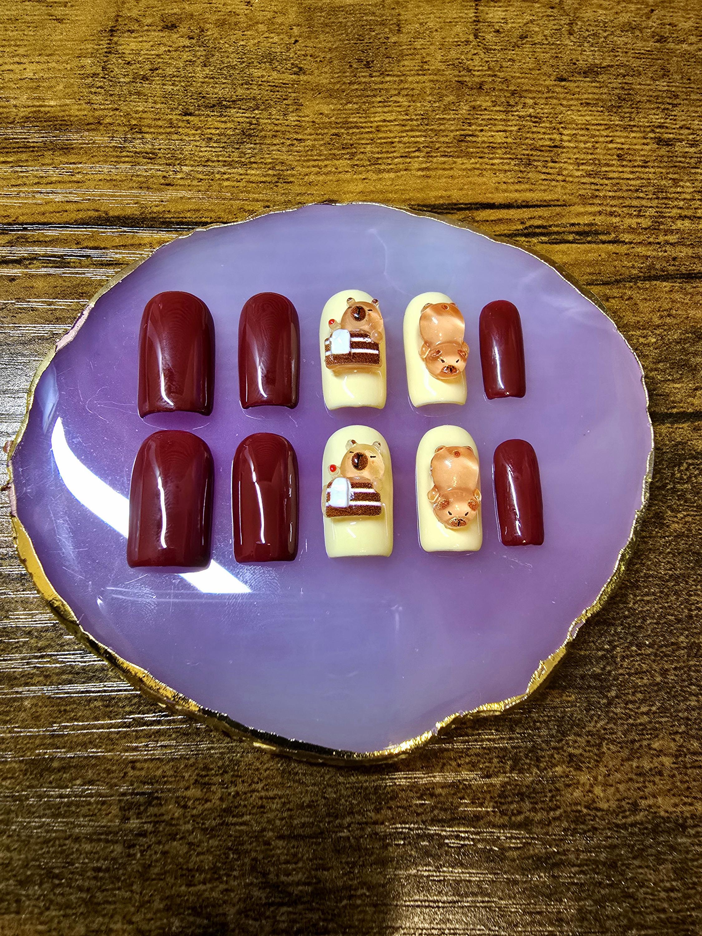 Capybara Charm Press On Nails | Handmade Gel-X Nail Set