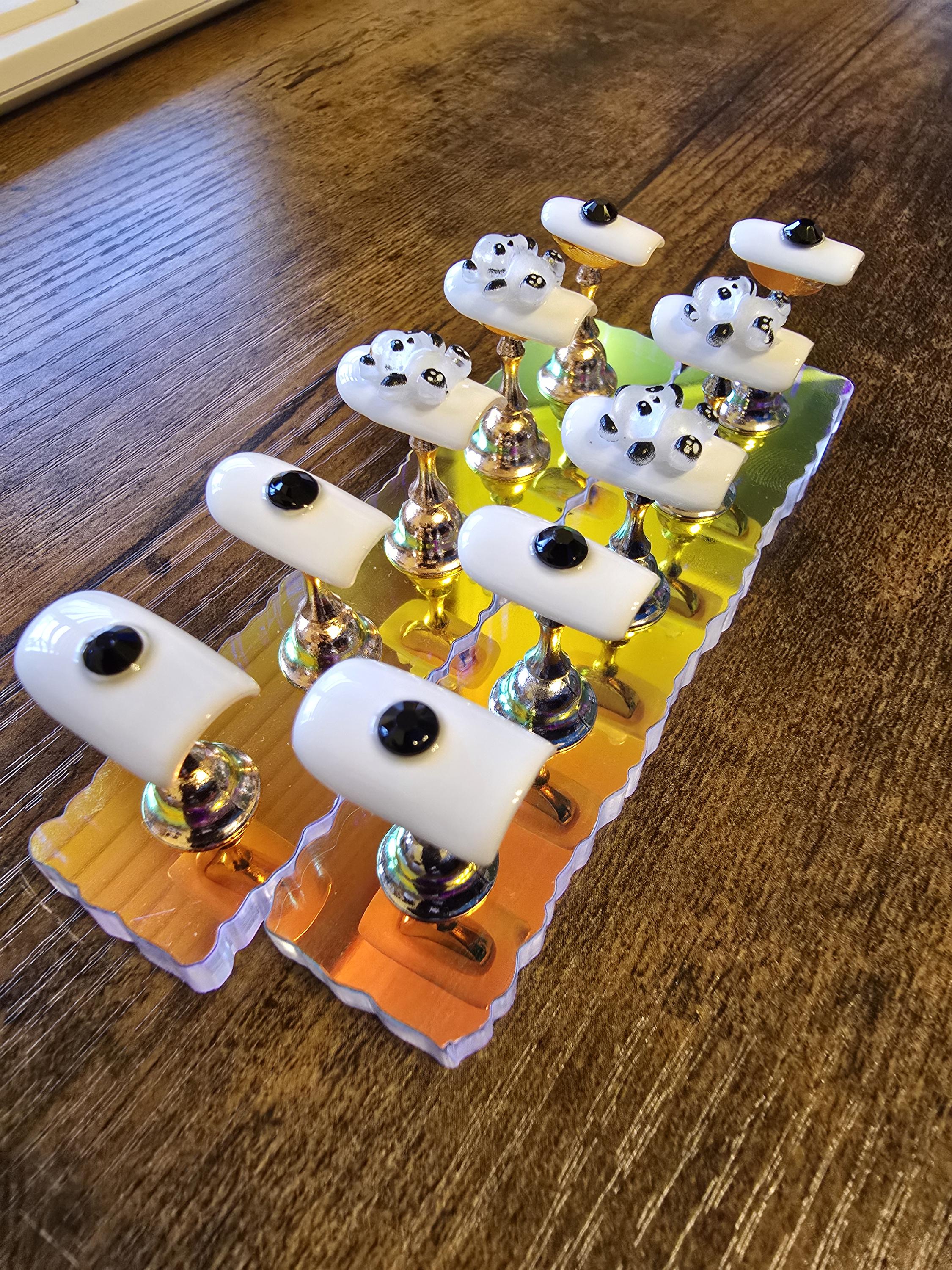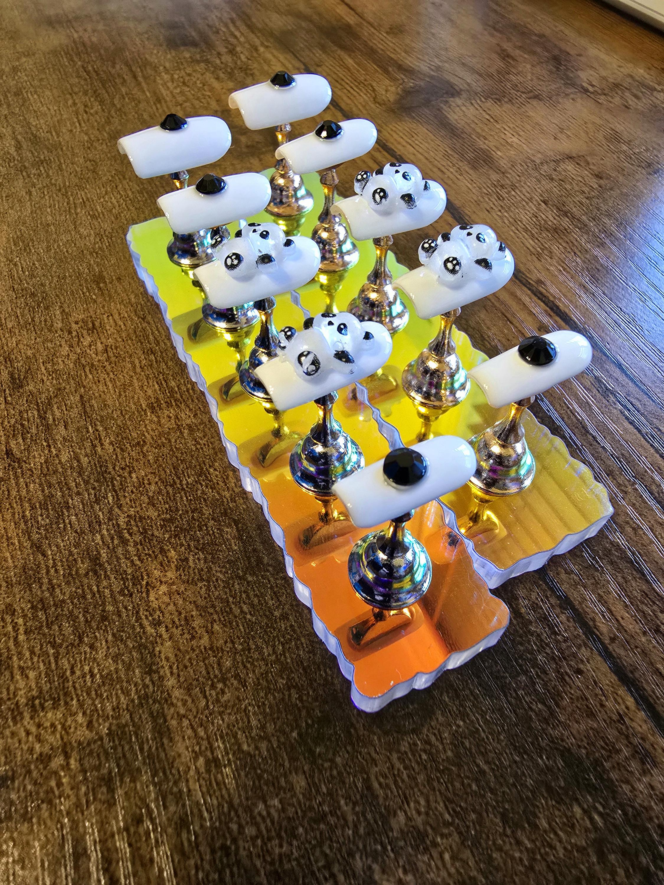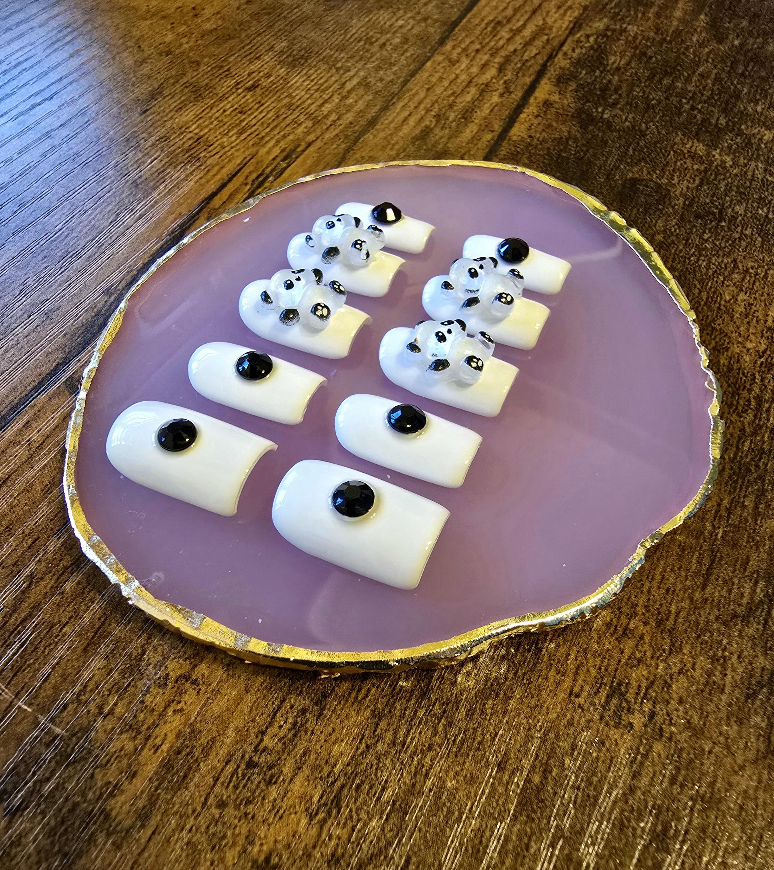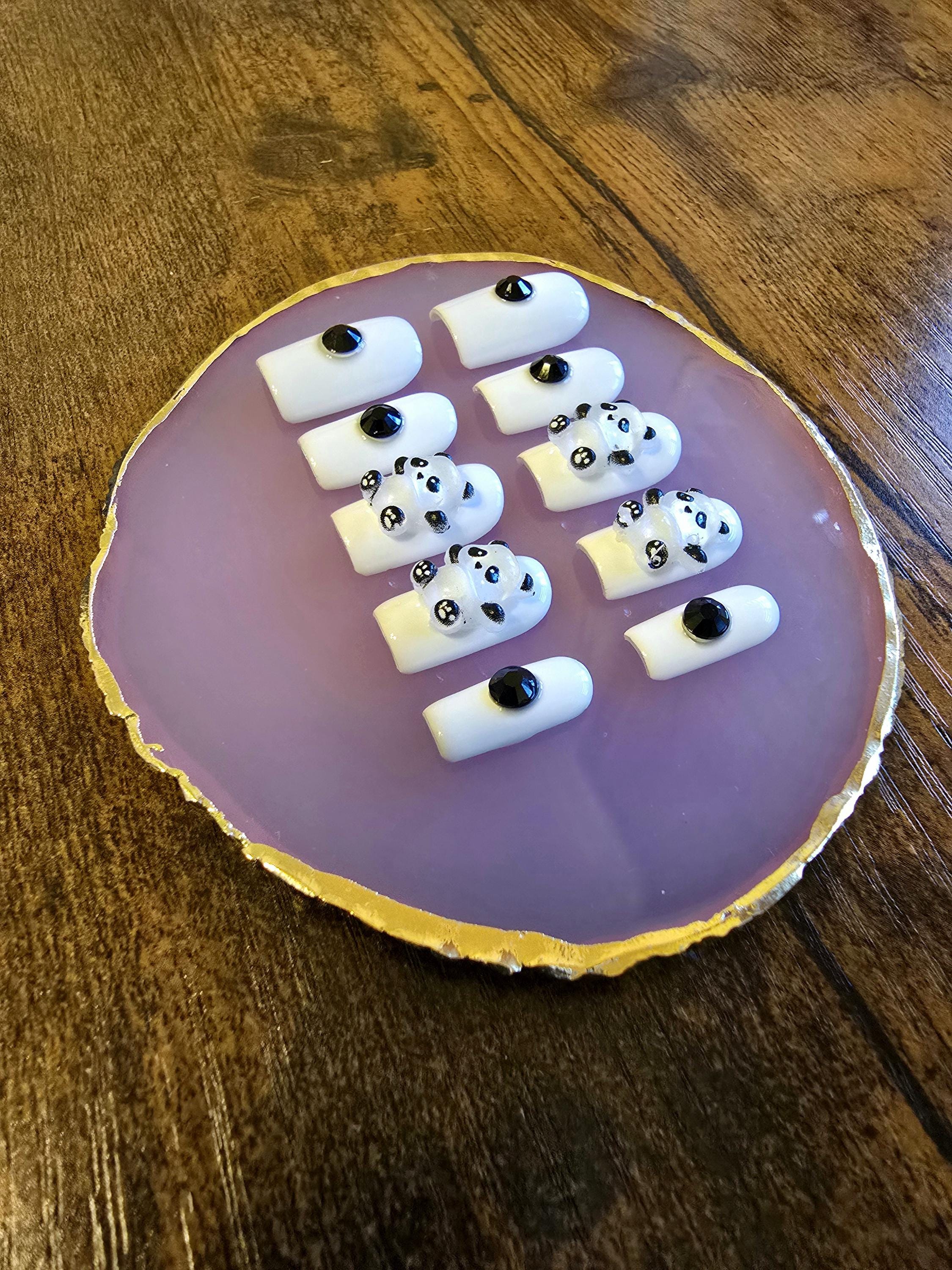 Item includes 10 handmade press on nails made using Après gel-X nails which are strong and won't bend. Gel polish is used ensuring longevity. These press on nails are reusable if taken care of and gently removed. If you are unsure of your nail size I recommend buying one of my sizing kits. If you need a custom size please put your size in the personalization box or message me. For hygienic reasons I won't be accepting returns. Please be aware colors might differ slightly depending on screen viewing on. PLEASE NOTE: Charms and/or decals may differ slightly depending on stock. A MANICURE SET IS INCLUDED WITH EACH ORDER FOR EASY APPLICATION.