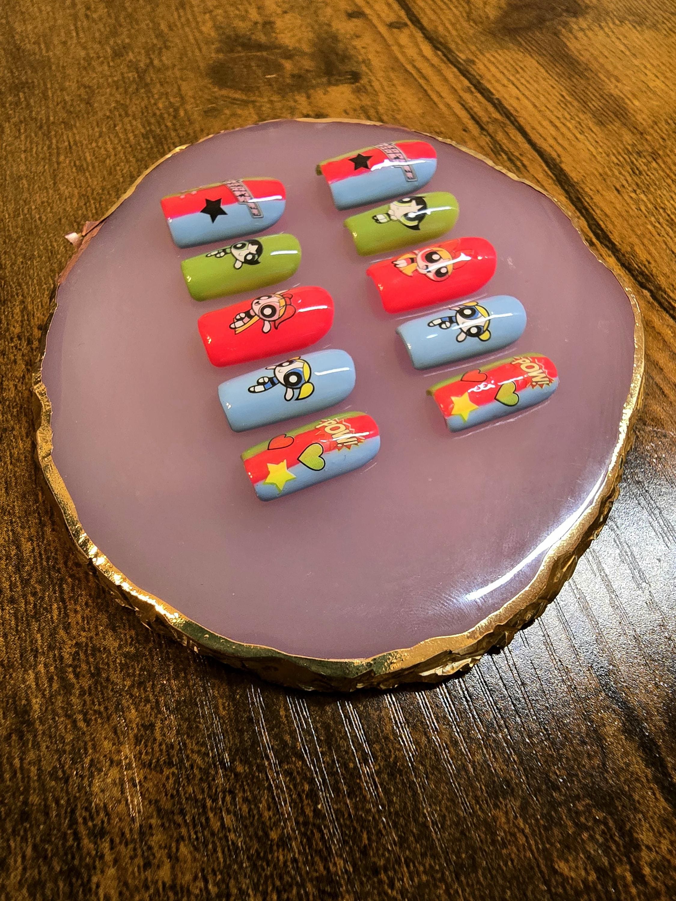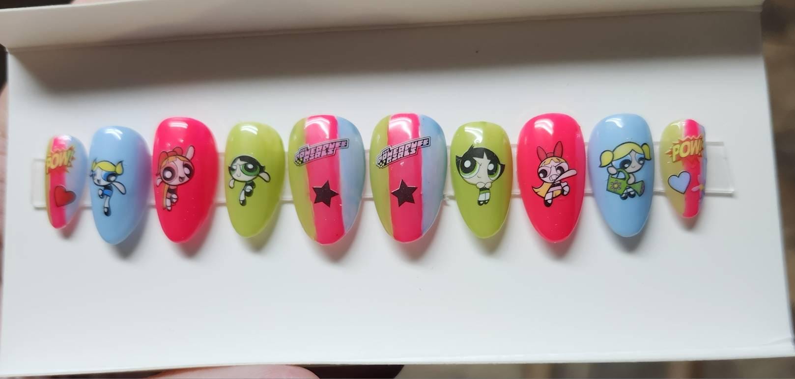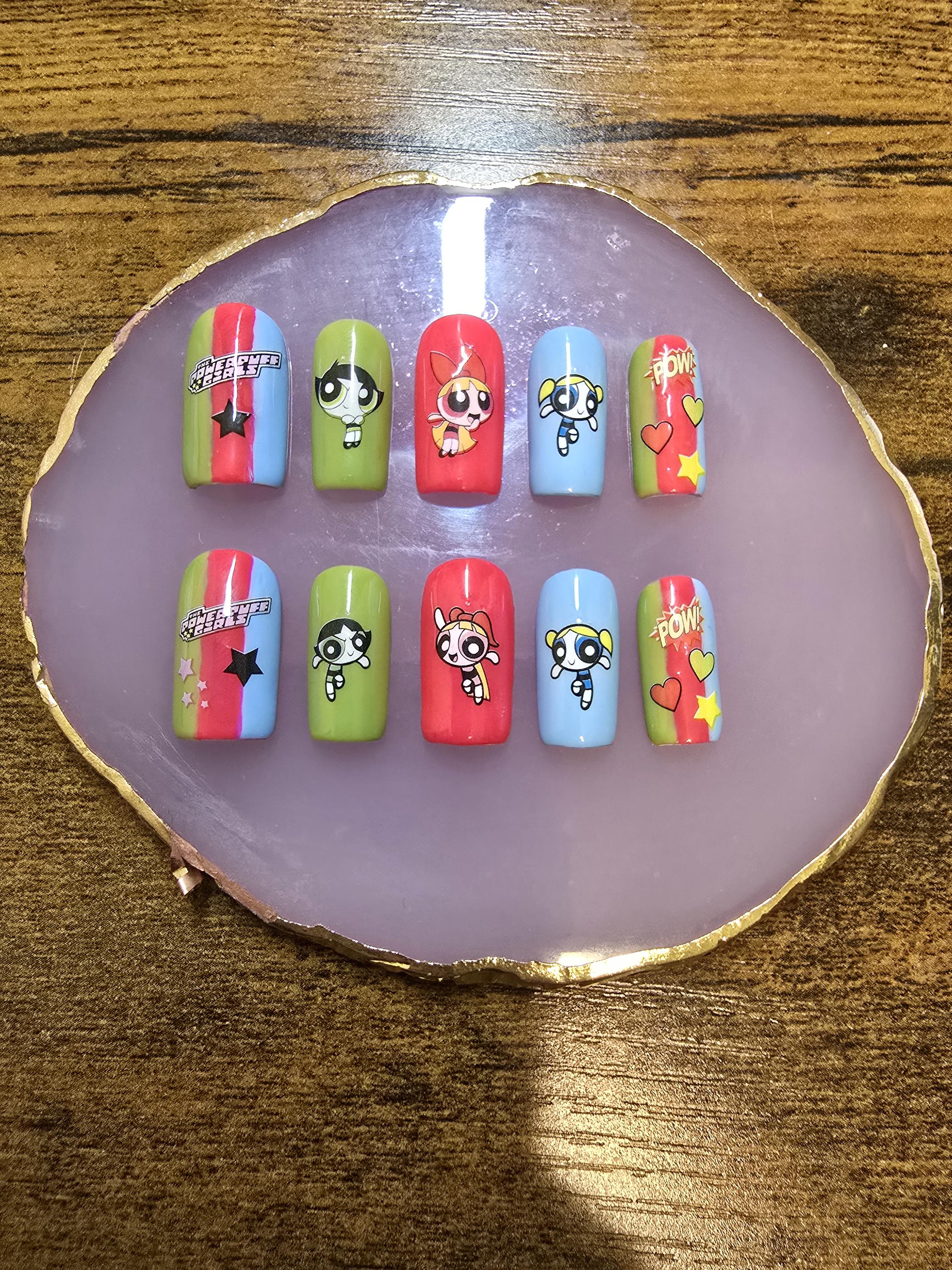 Item includes 10 handmade press on nails made using Après gel-X nails which are strong and won't bend. Gel polish is used ensuring longevity. These press on nails are reusable if taken care of and gently removed. If you are unsure of your nail size I recommend buying one of my sizing kits. If you need a custom size please put your size in the personalization box or message me. For hygienic reasons I won't be accepting returns. Please be aware colors might differ slightly depending on screen viewing on. PLEASE NOTE: Charms and/or decals may differ slightly depending on stock. A MANICURE SET IS INCLUDED WITH EACH ORDER FOR EASY APPLICATION.