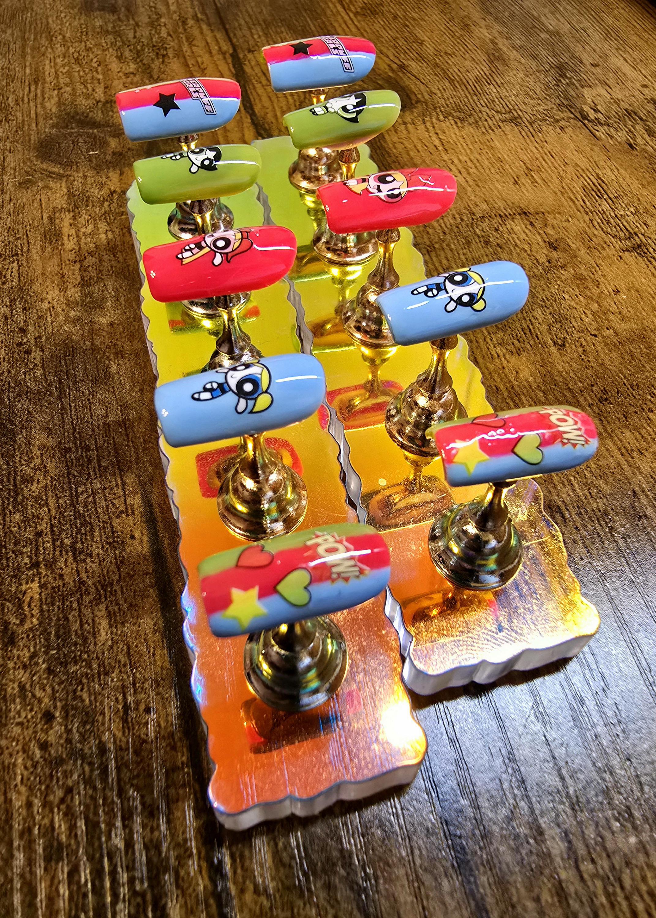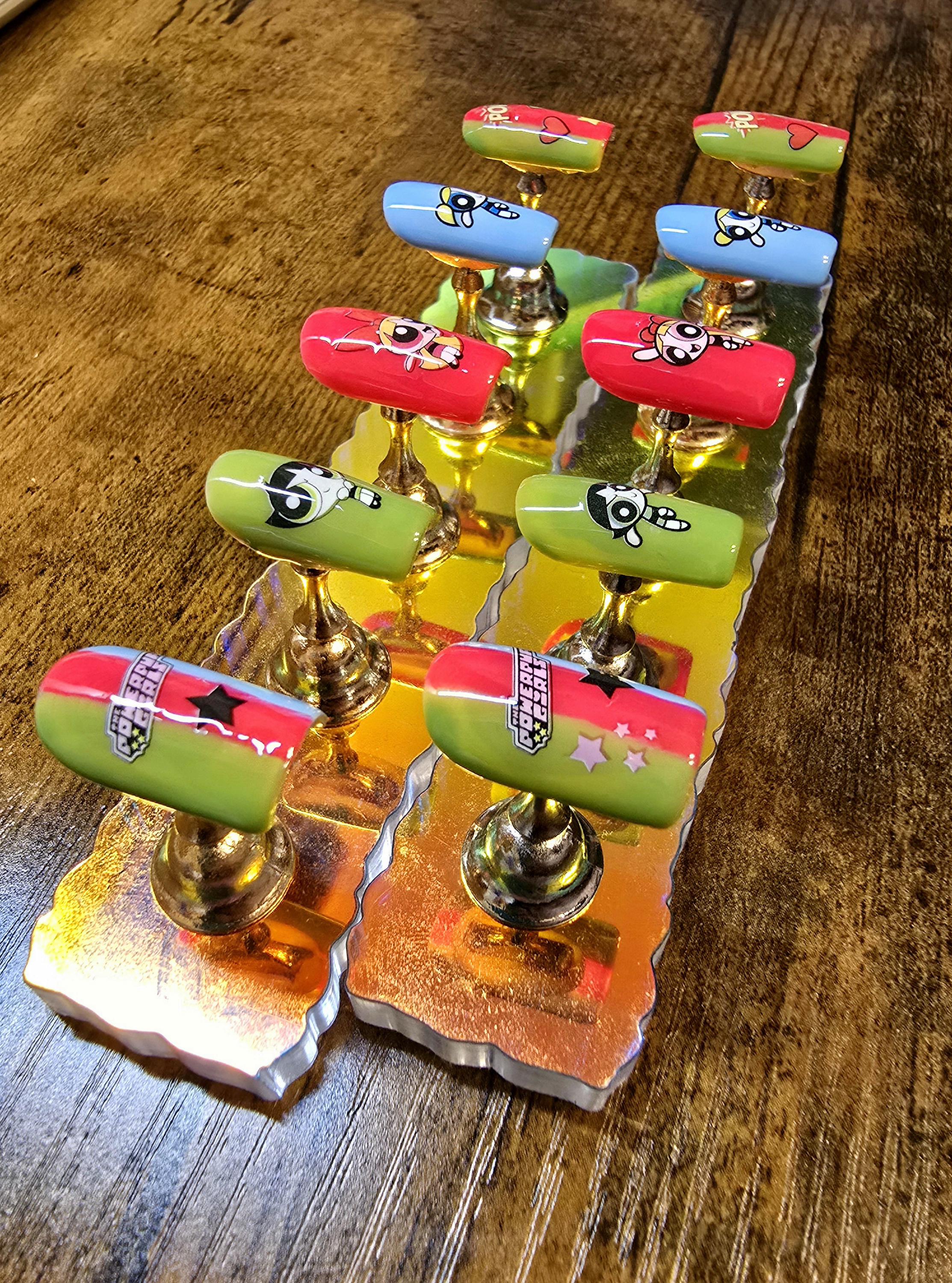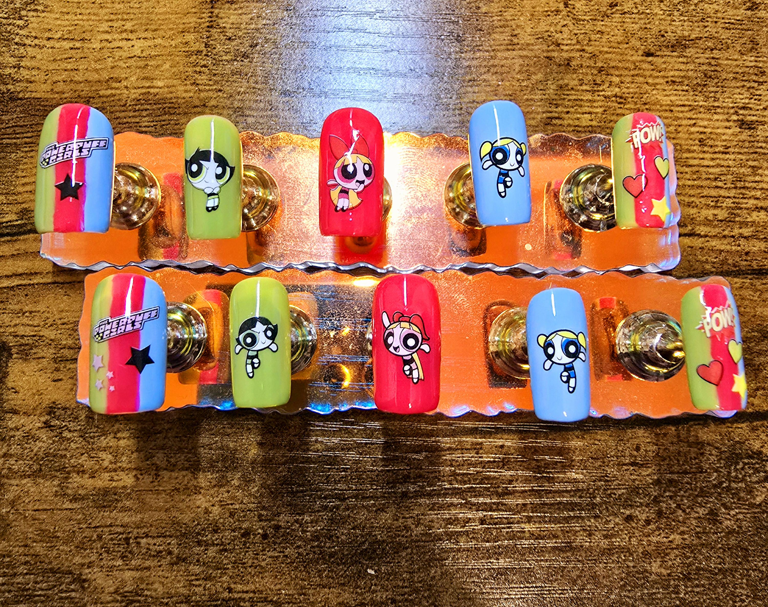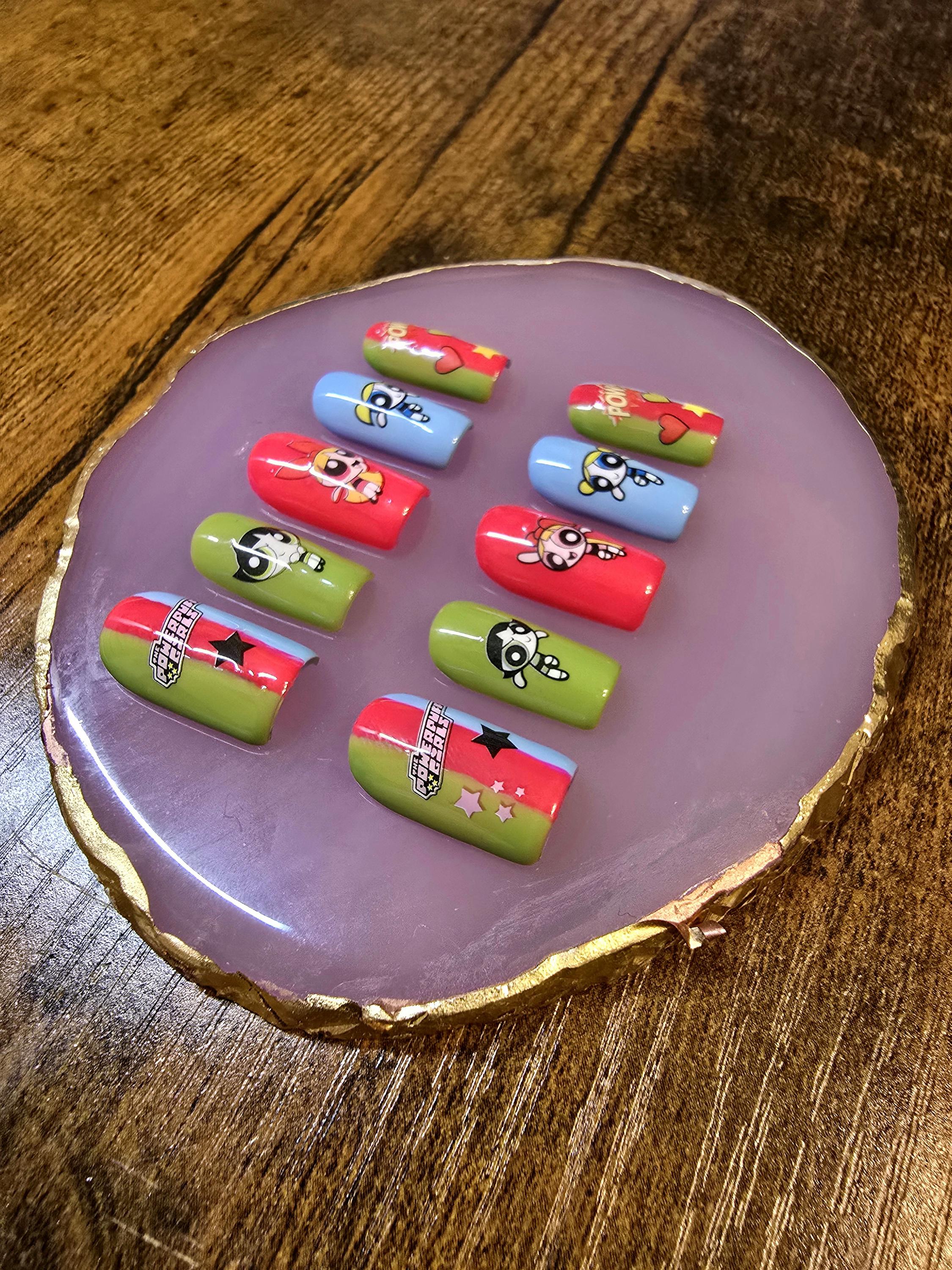 Item includes 10 handmade press on nails made using Après gel-X nails which are strong and won't bend. Gel polish is used ensuring longevity. These press on nails are reusable if taken care of and gently removed. If you are unsure of your nail size I recommend buying one of my sizing kits. If you need a custom size please put your size in the personalization box or message me. For hygienic reasons I won't be accepting returns. Please be aware colors might differ slightly depending on screen viewing on. PLEASE NOTE: Charms and/or decals may differ slightly depending on stock. A MANICURE SET IS INCLUDED WITH EACH ORDER FOR EASY APPLICATION.