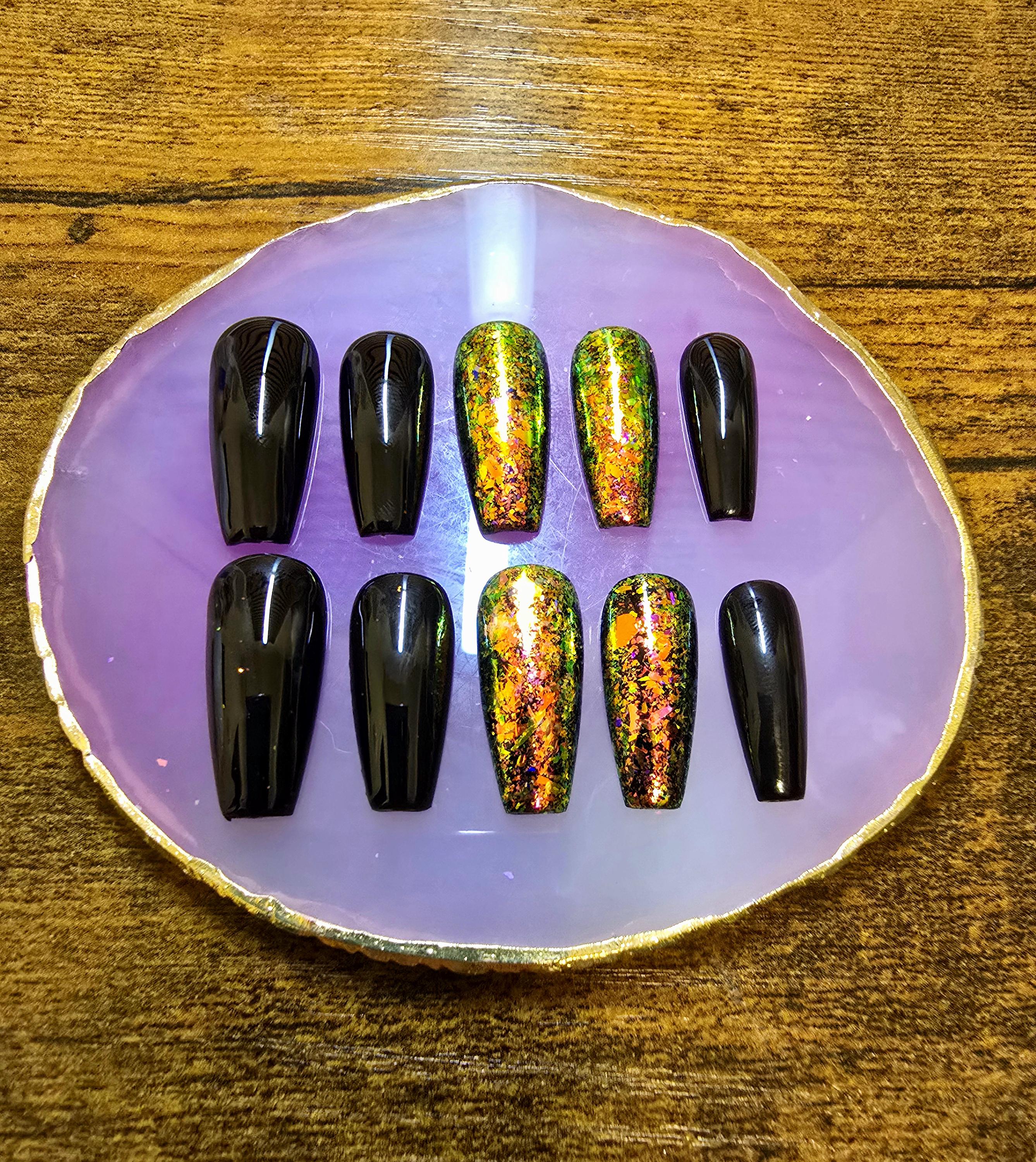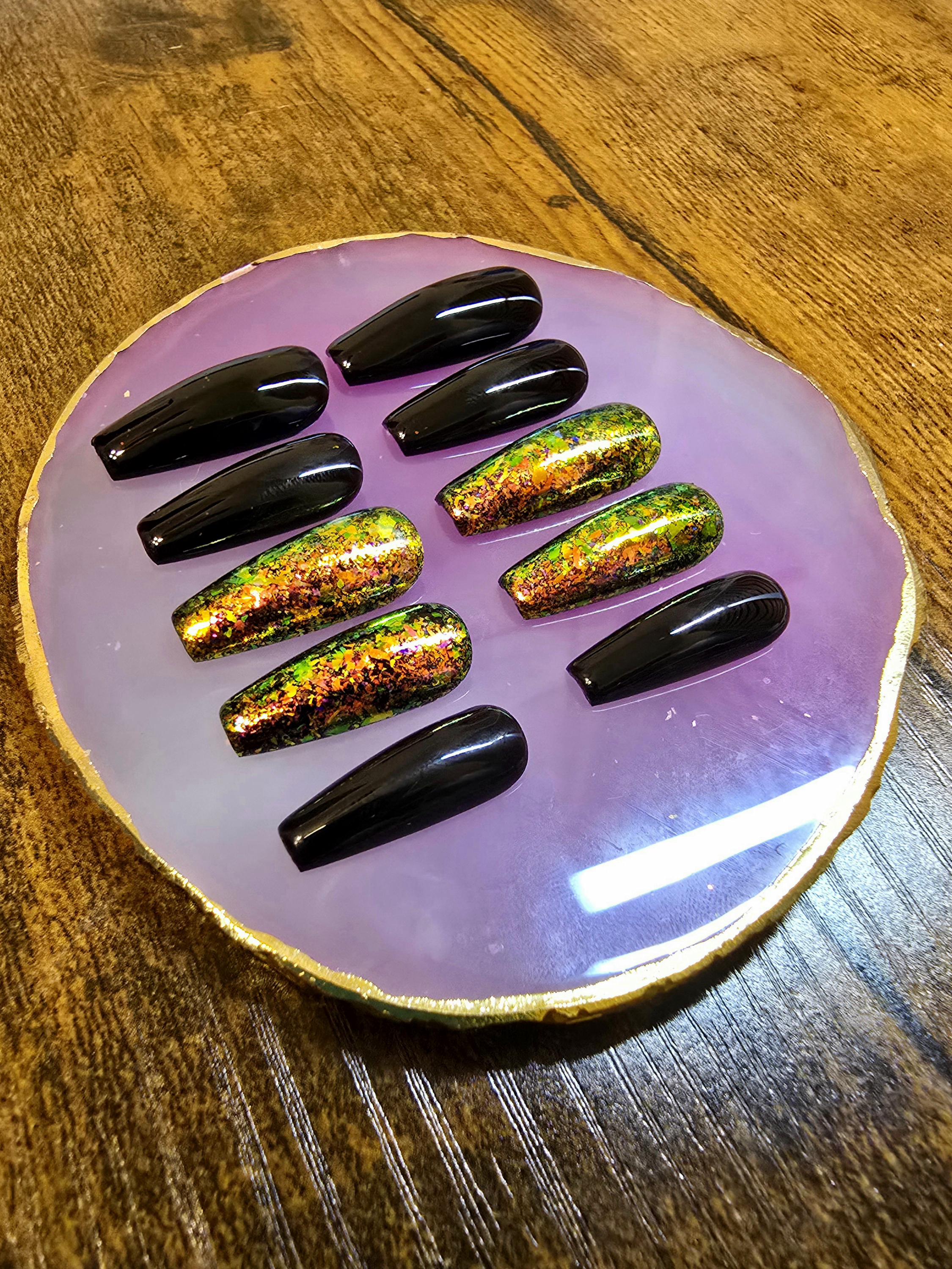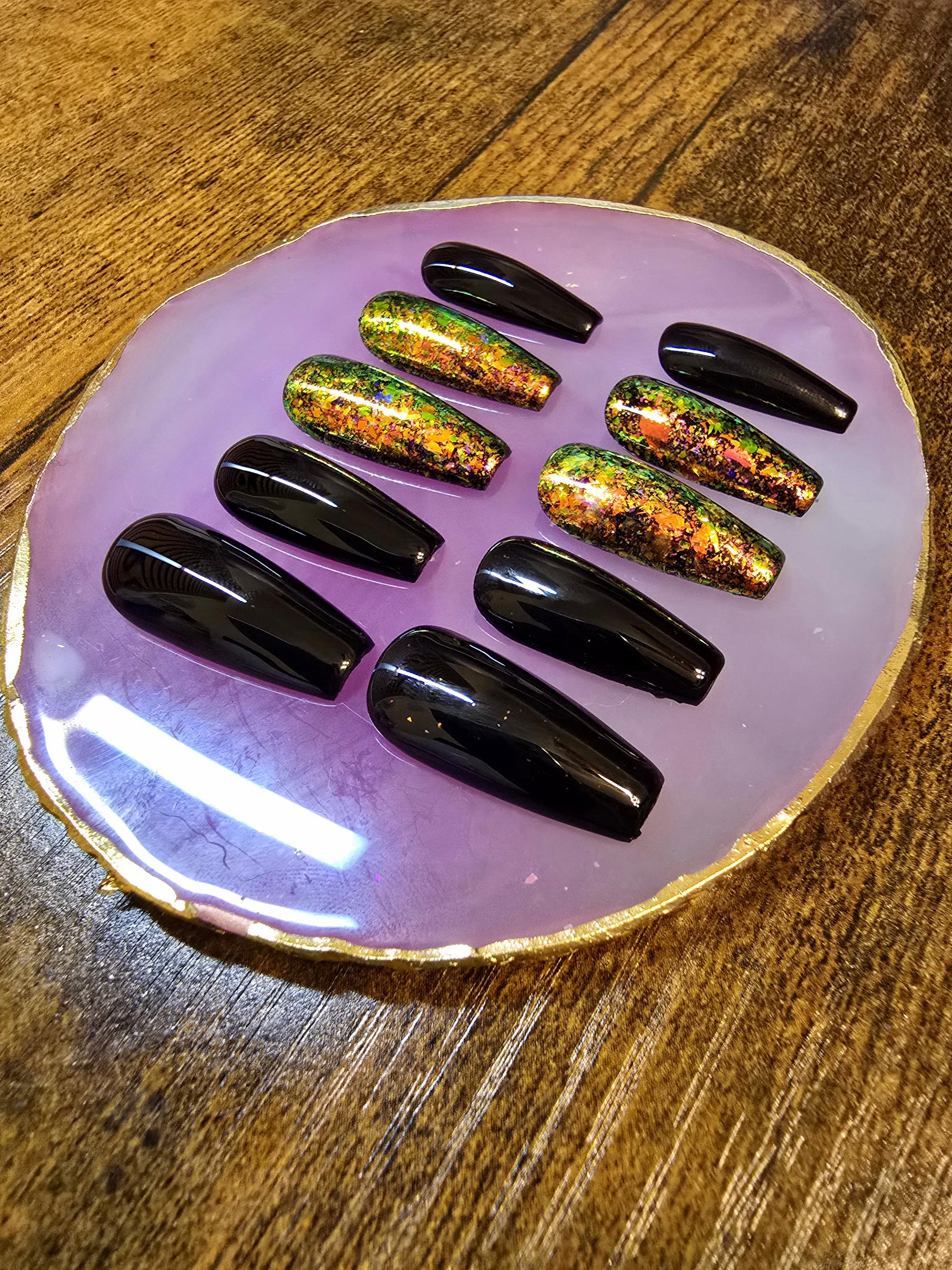 Dragon Eye Chameleon Press On Nails | Color Shifting Flakes