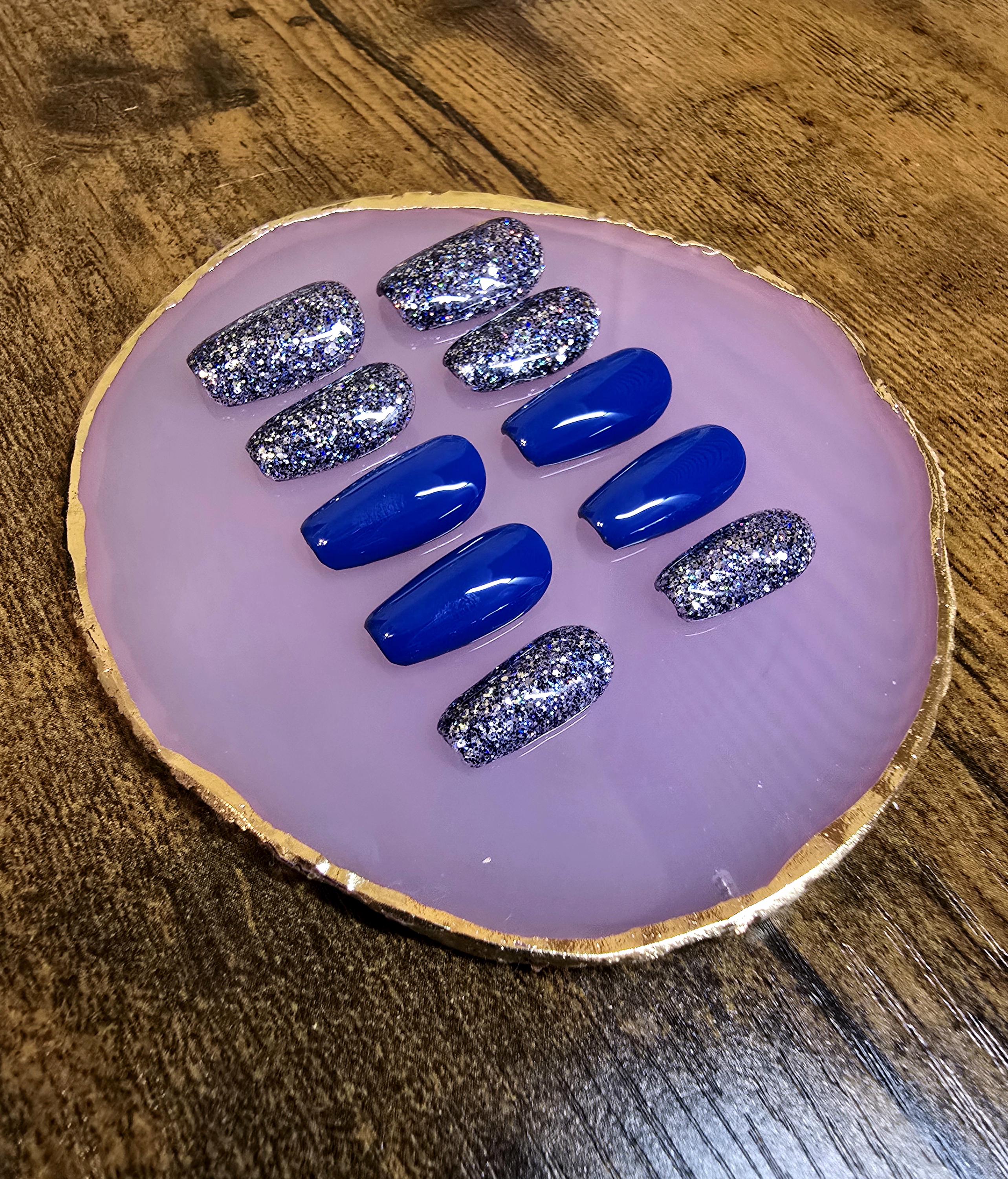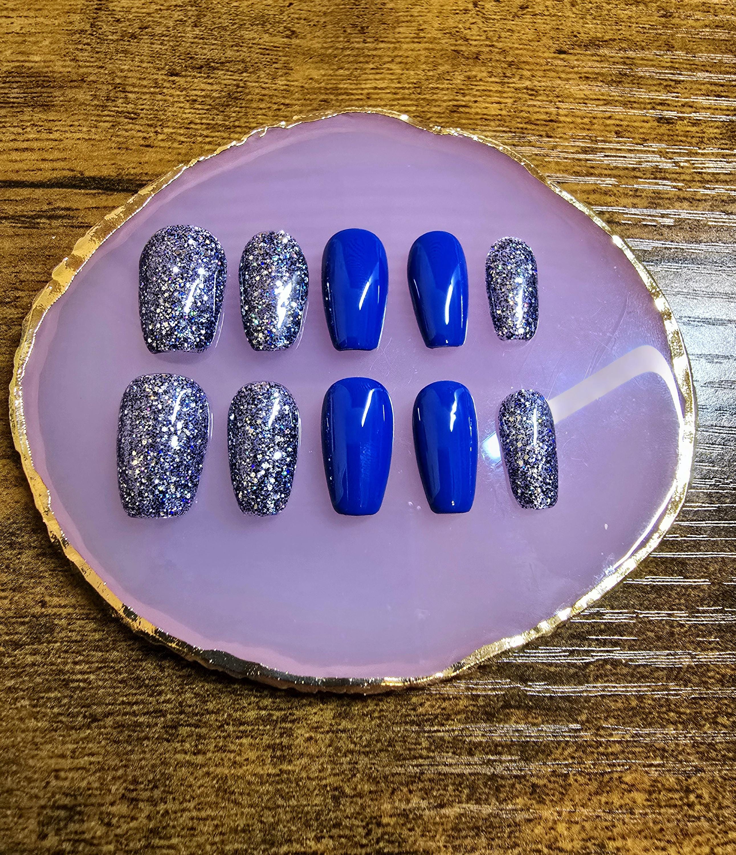 Item includes 10 handmade press on nails made using Après gel-X nails which are strong and won't bend. Gel polish is used ensuring longevity. These press on nails are reusable if taken care of and gently removed. If you are unsure of your nail size I recommend buying one of my sizing kits. If you need a custom size please put your size in the personalization box or message me. For hygienic reasons I won't be accepting returns. Please be aware colors might differ slightly depending on screen viewing on. PLEASE NOTE: Charms and/or decals may differ slightly depending on stock. A MANICURE SET IS INCLUDED WITH EACH ORDER FOR EASY APPLICATION.