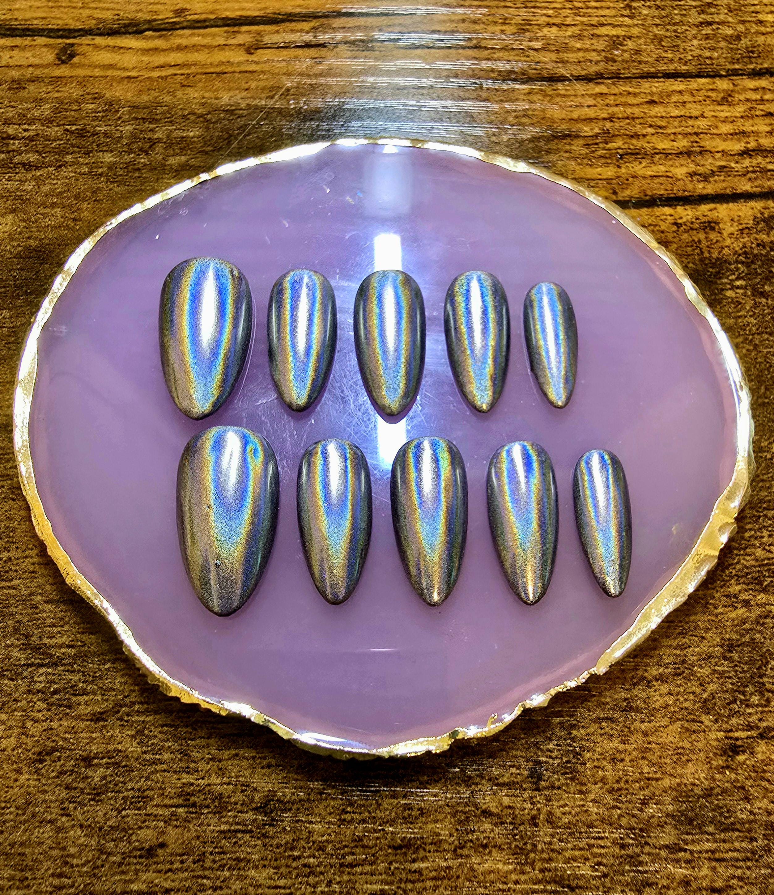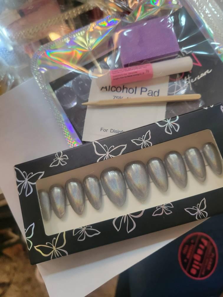 Item includes 10 handmade press on nails made using Après gel-X nails which are strong and won't bend. Gel polish is used ensuring longevity. These press on nails are reusable if taken care of and gently removed. If you are unsure of your nail size I recommend buying one of my sizing kits. If you need a custom size please put your size in the personalization box or message me. For hygienic reasons I won't be accepting returns. Please be aware colors might differ slightly depending on screen viewing on. PLEASE NOTE: Charms and/or decals may differ slightly depending on stock. A MANICURE SET IS INCLUDED WITH EACH ORDER FOR EASY APPLICATION.