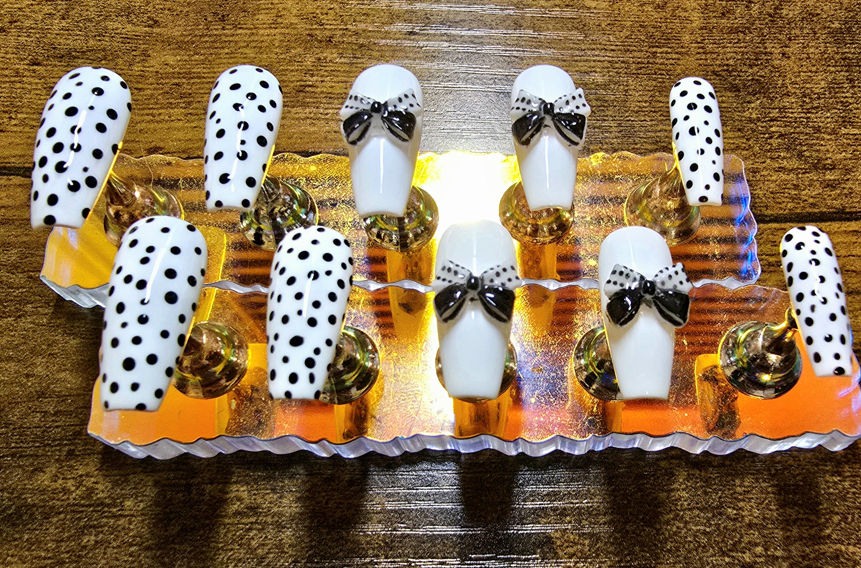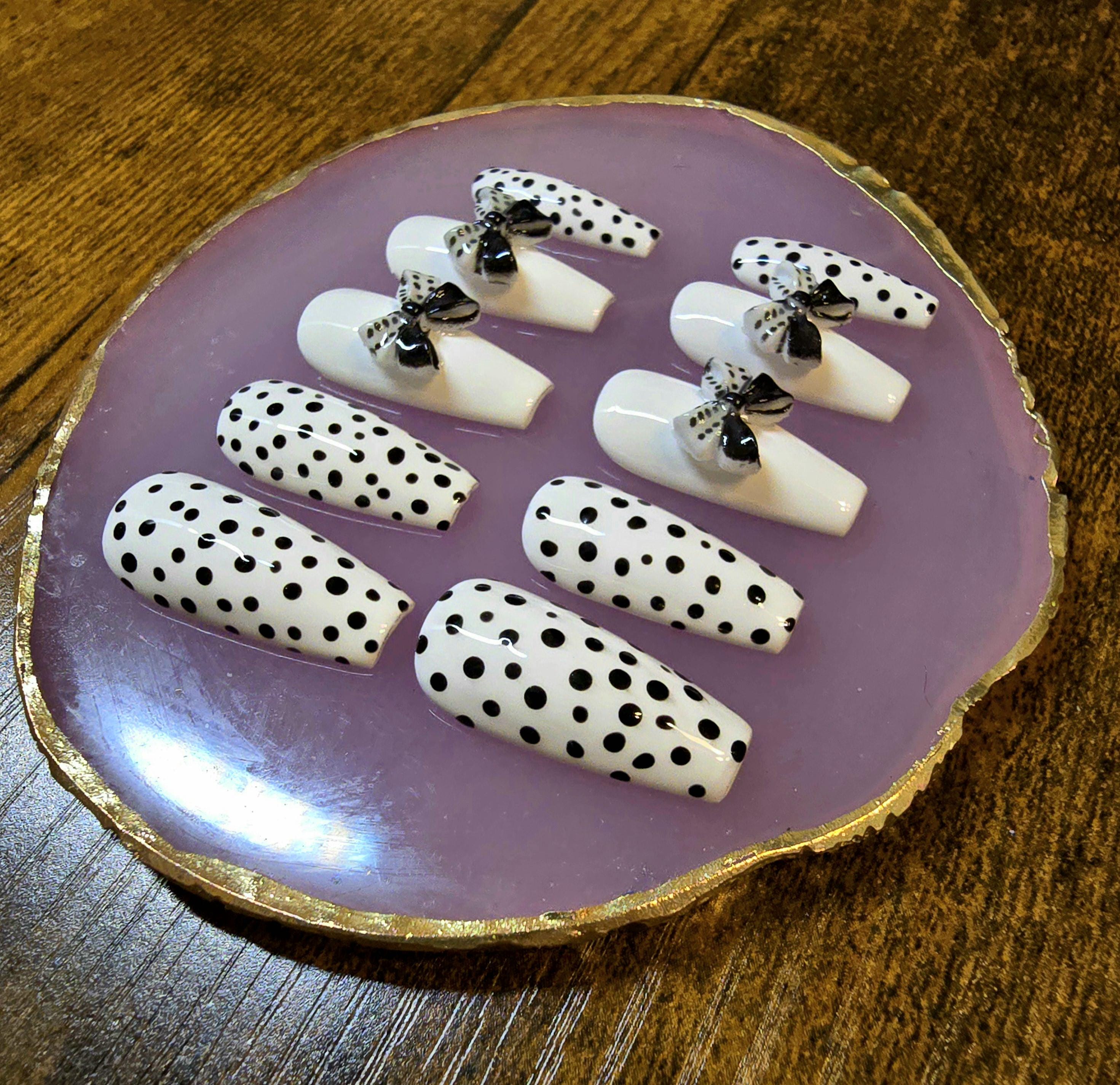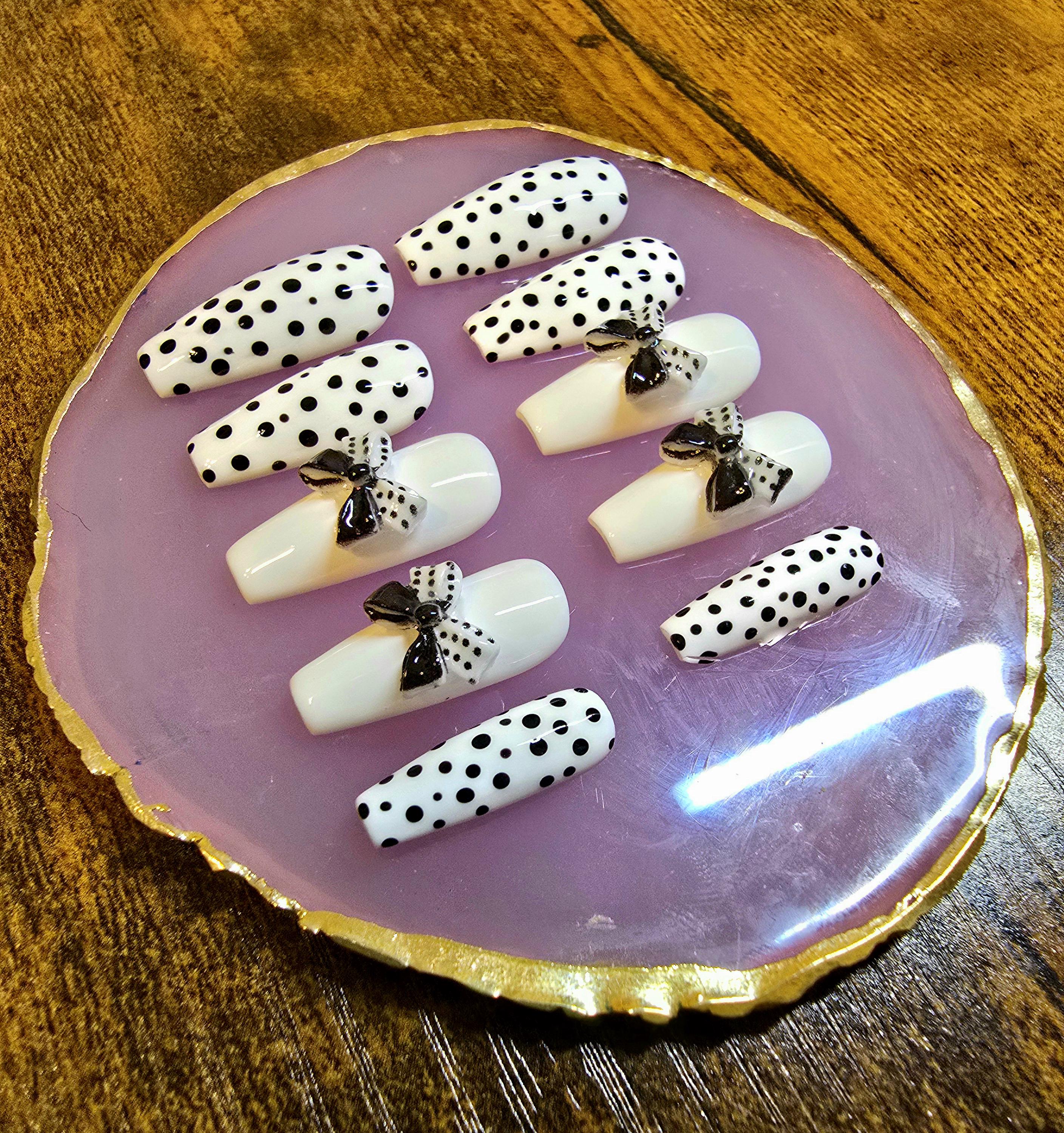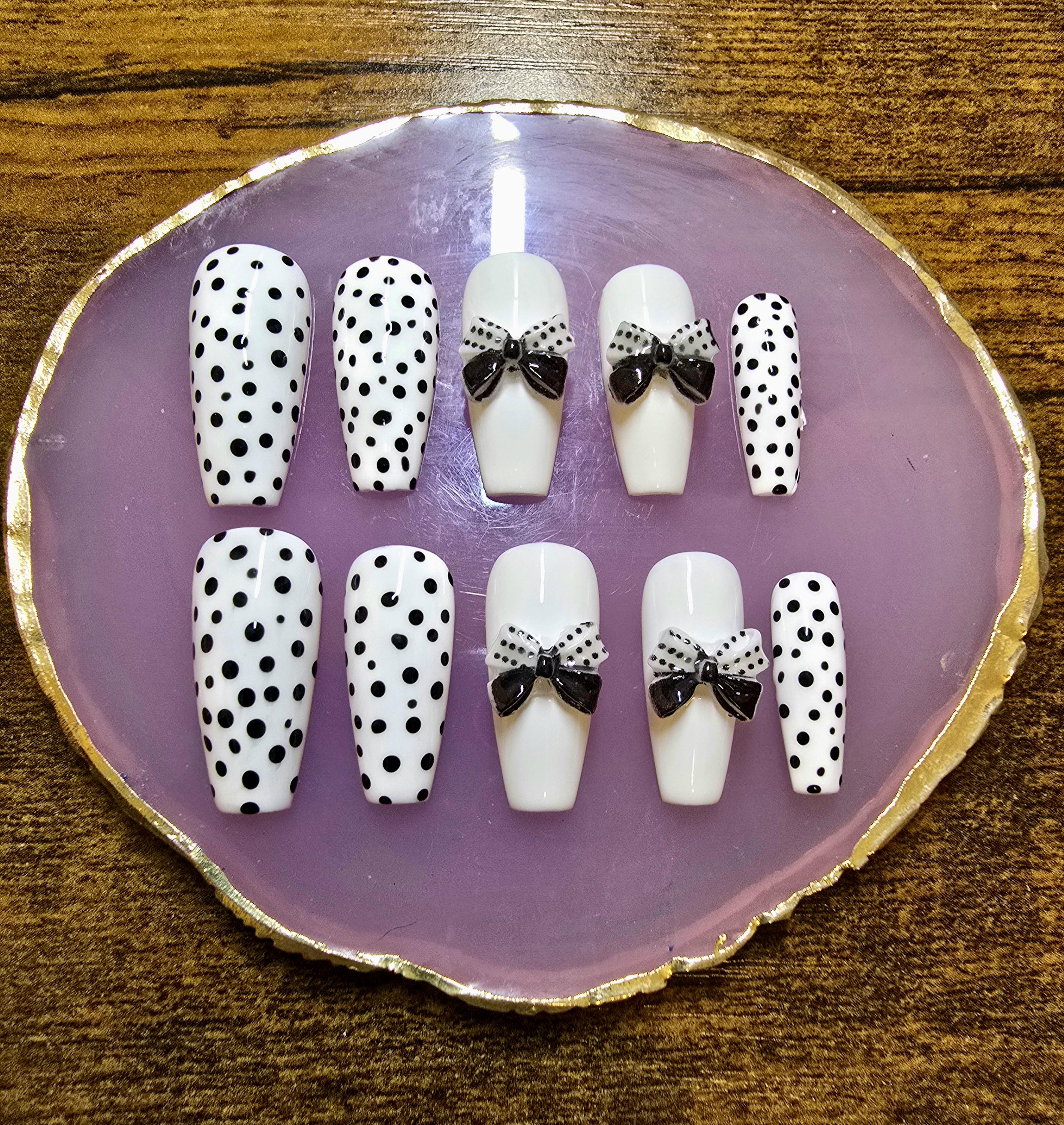 Black and White Bow Press On Nail Set | Gel-X Nails | Bow Charm