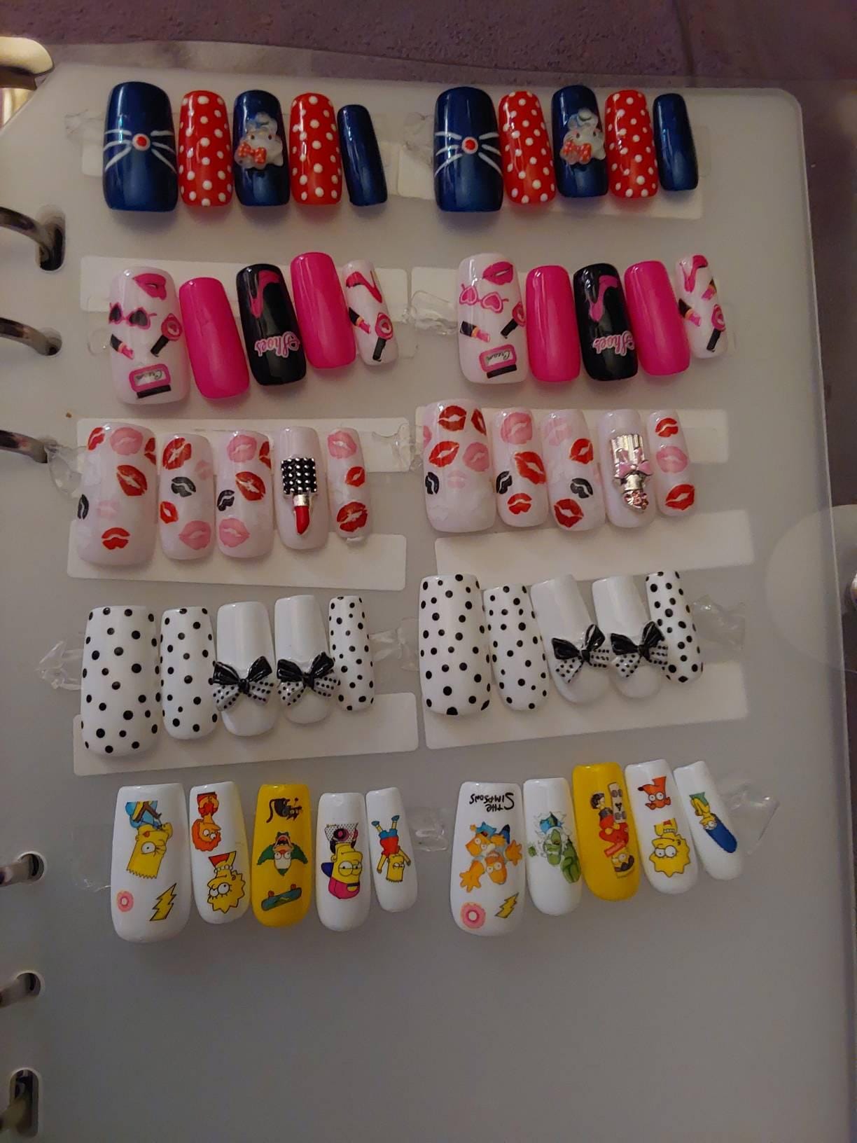 Item includes 10 handmade press on nails made using Après gel-X nails which are strong and won't bend. Gel polish is used ensuring longevity. These press on nails are reusable if taken care of and gently removed. If you are unsure of your nail size I recommend buying one of my sizing kits. If you need a custom size please put your size in the personalization box or message me. For hygienic reasons I won't be accepting returns. Please be aware colors might differ slightly depending on screen viewing on. PLEASE NOTE: Charms and/or decals may differ slightly depending on stock. A MANICURE SET IS INCLUDED WITH EACH ORDER FOR EASY APPLICATION.