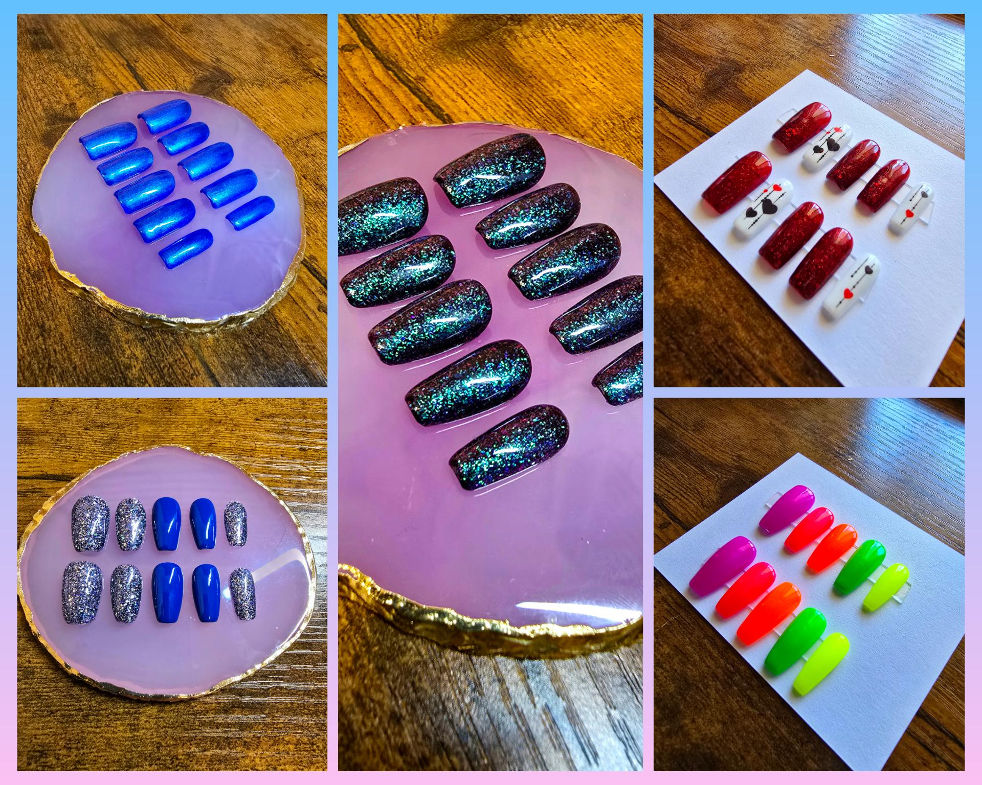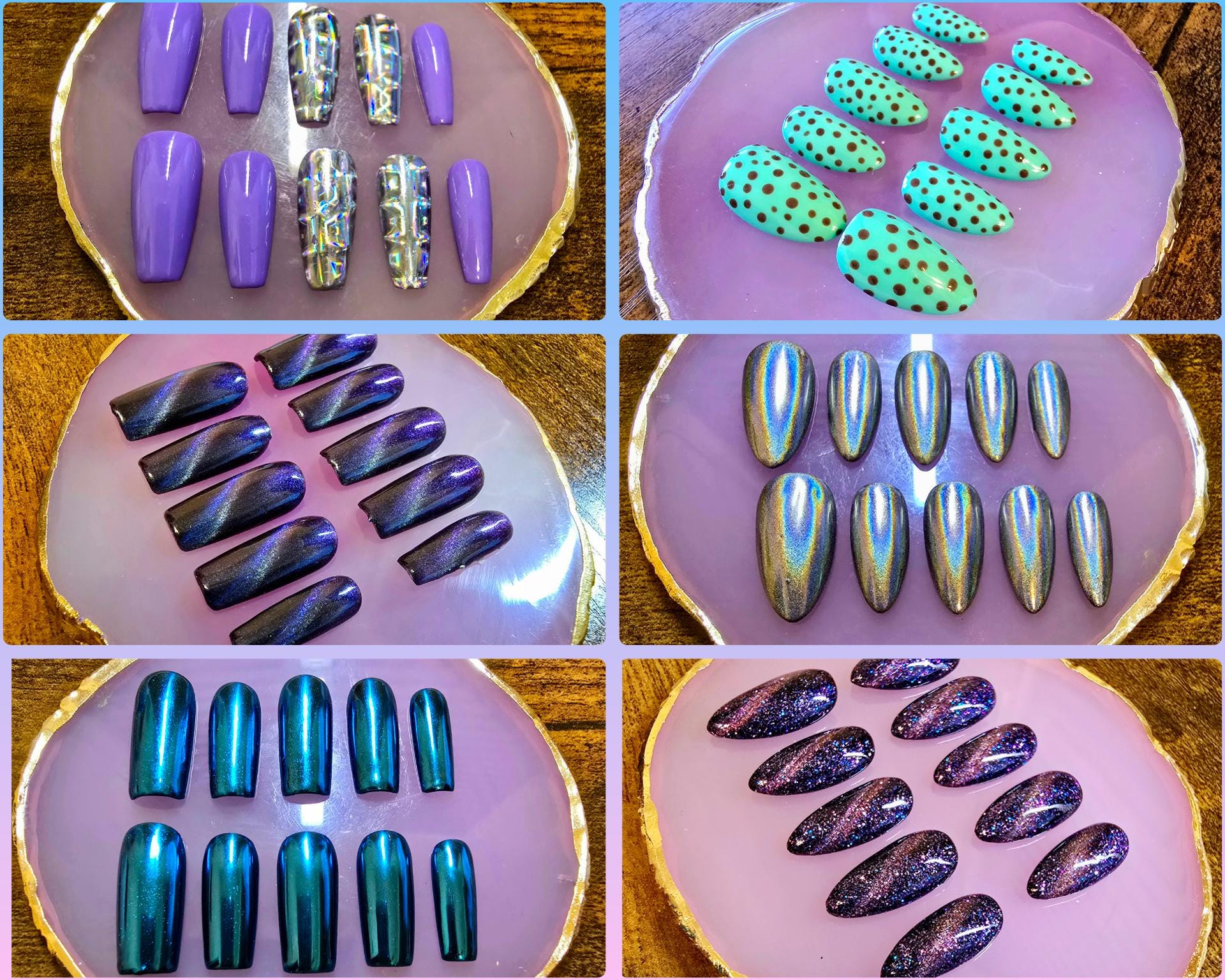 Mystery scoop press on nails set! I will scoop for your mystery nail set. Pictures listed will be the possible nail set you will receive. If there is a set you absolutely don't want, put in personalization box. Manicure pack included.