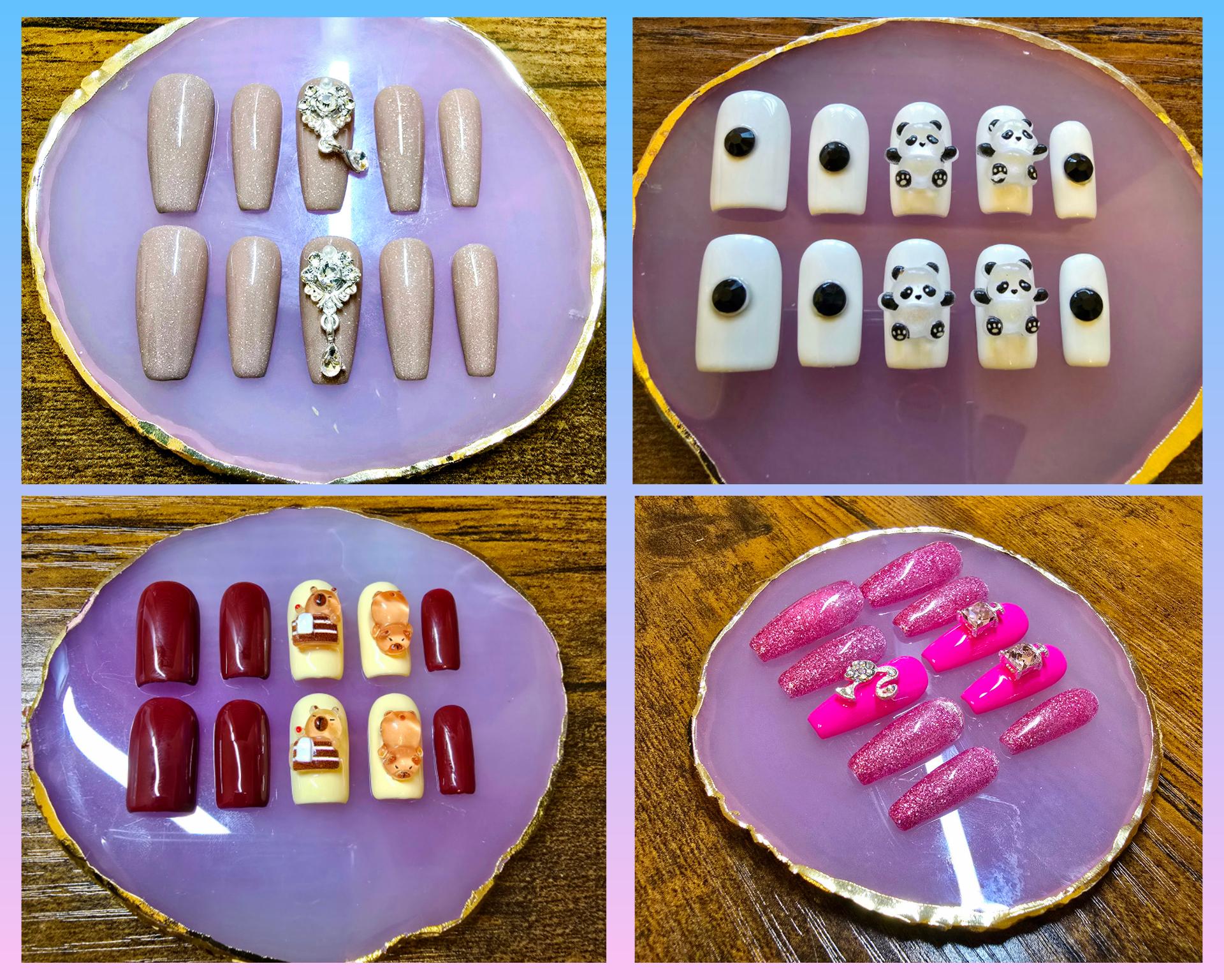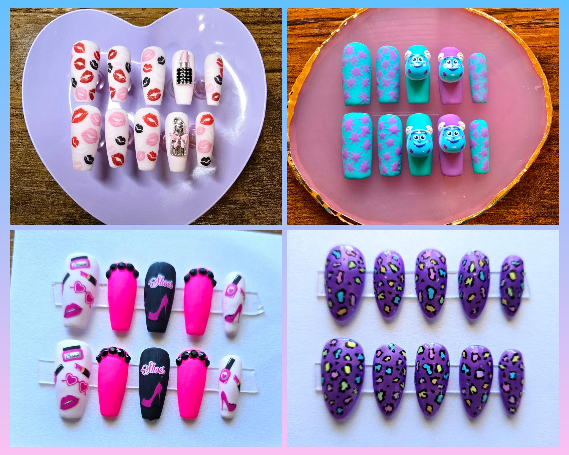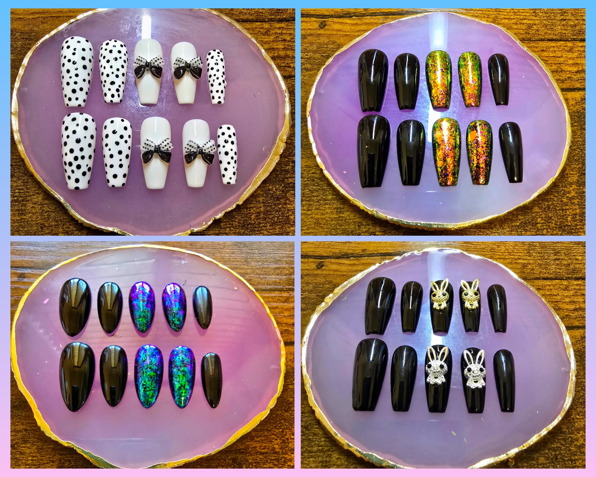 Mystery scoop press on nails set! I will scoop for your mystery nail set. Pictures listed will be the possible nail set you will receive. If there is a set you absolutely don't want, put in personalization box. Manicure pack included.