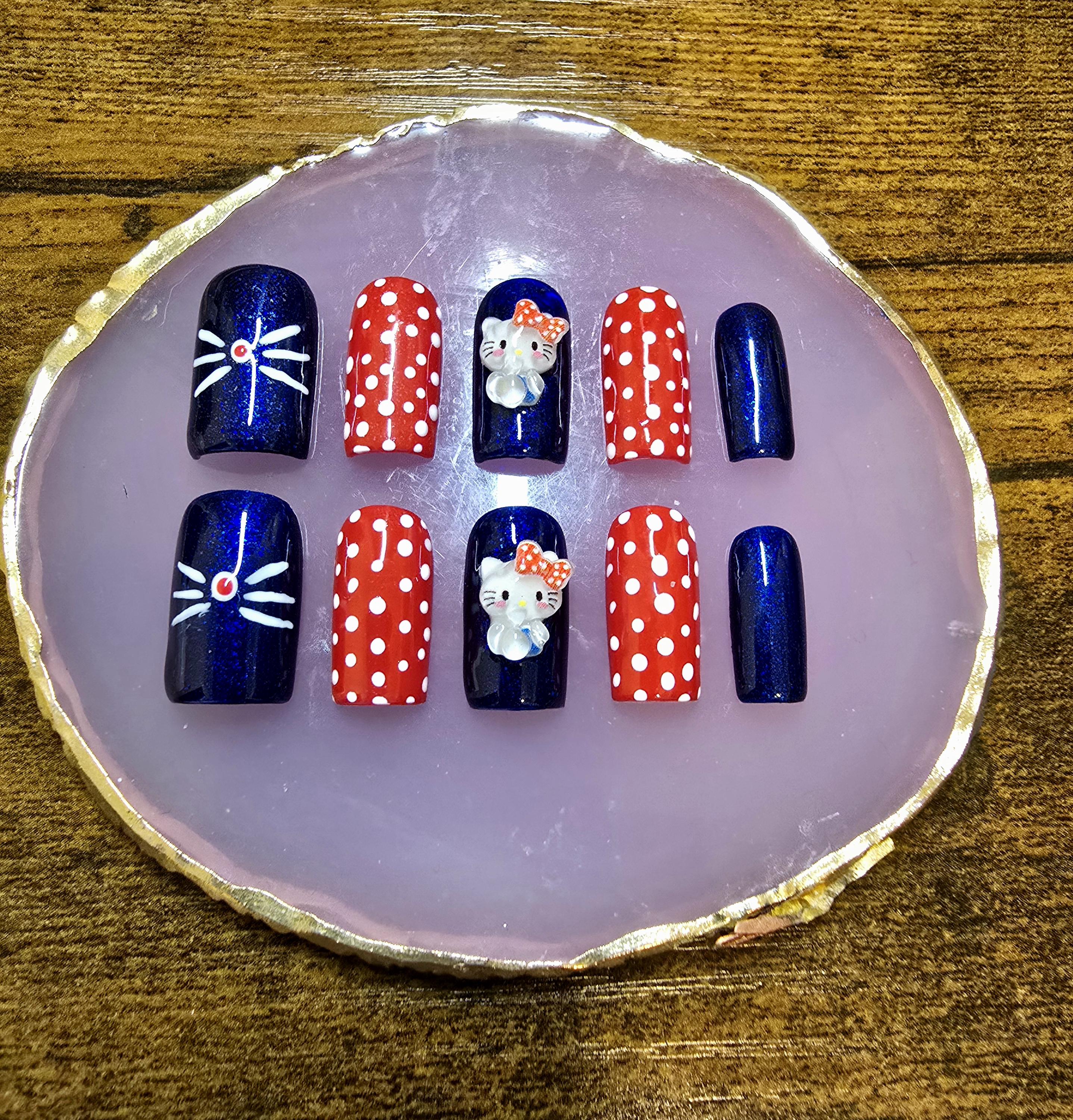 Kawaii Kitty Press On Nails | Anime Cartoon Nail Set