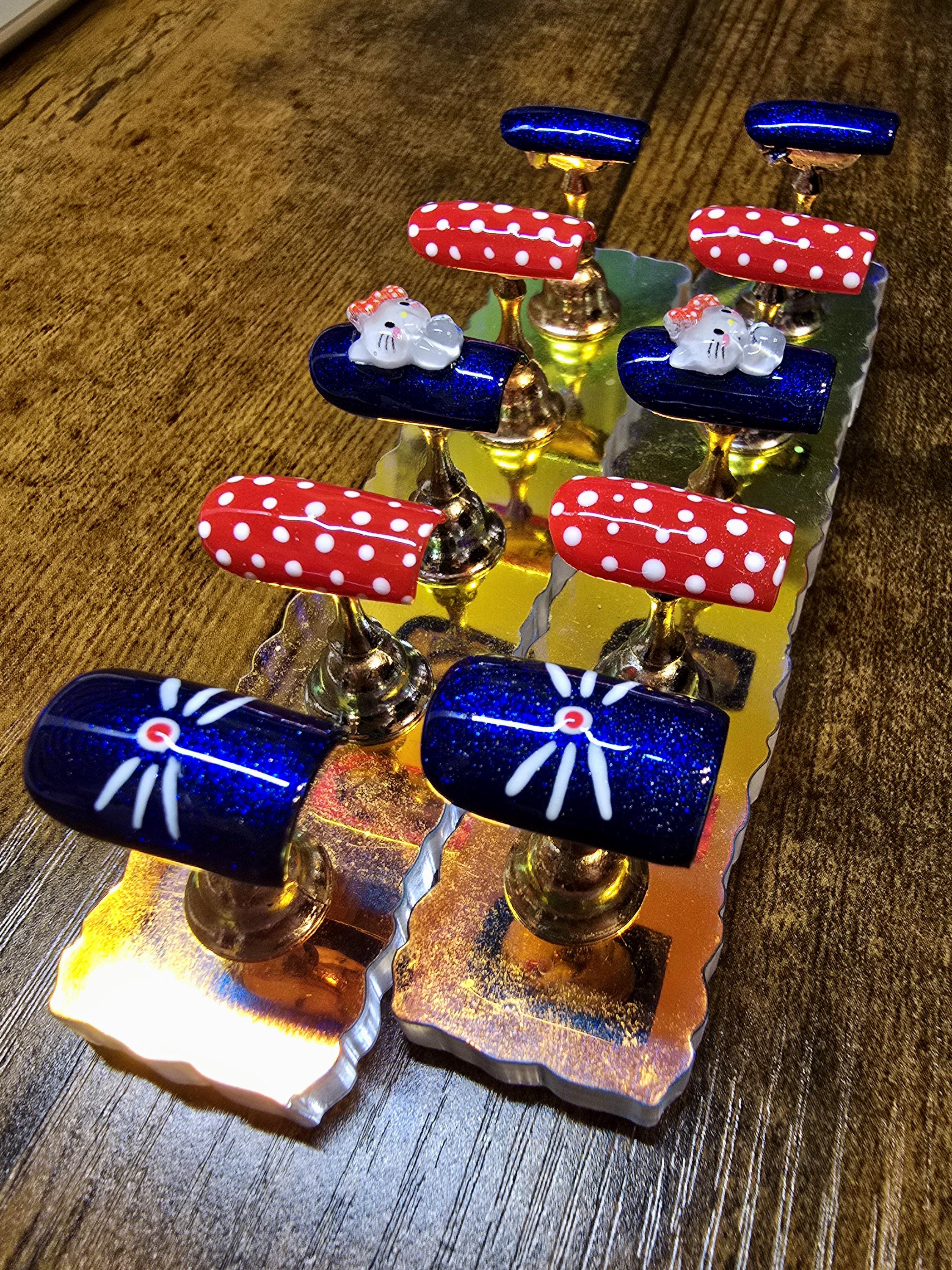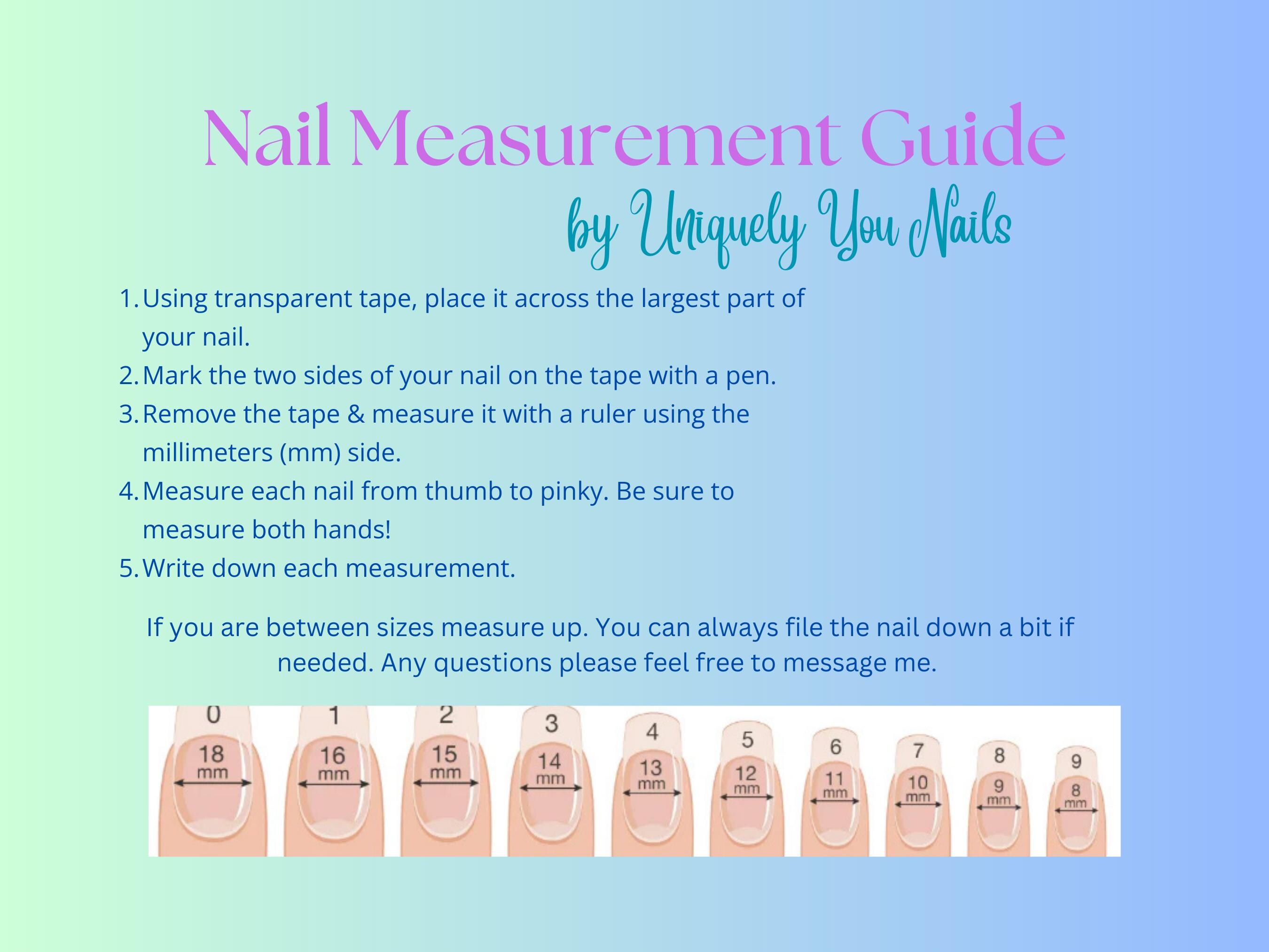 Item includes 10 handmade press on nails made using Après gel-X nails which are strong and won't bend. Gel polish is used ensuring longevity. These press on nails are reusable if taken care of and gently removed. If you are unsure of your nail size I recommend buying one of my sizing kits. If you need a custom size please put your size in the personalization box or message me. For hygienic reasons I won't be accepting returns. Please be aware colors might differ slightly depending on screen viewing on. PLEASE NOTE: Charms and/or decals may differ slightly depending on stock. A MANICURE SET IS INCLUDED WITH EACH ORDER FOR EASY APPLICATION.