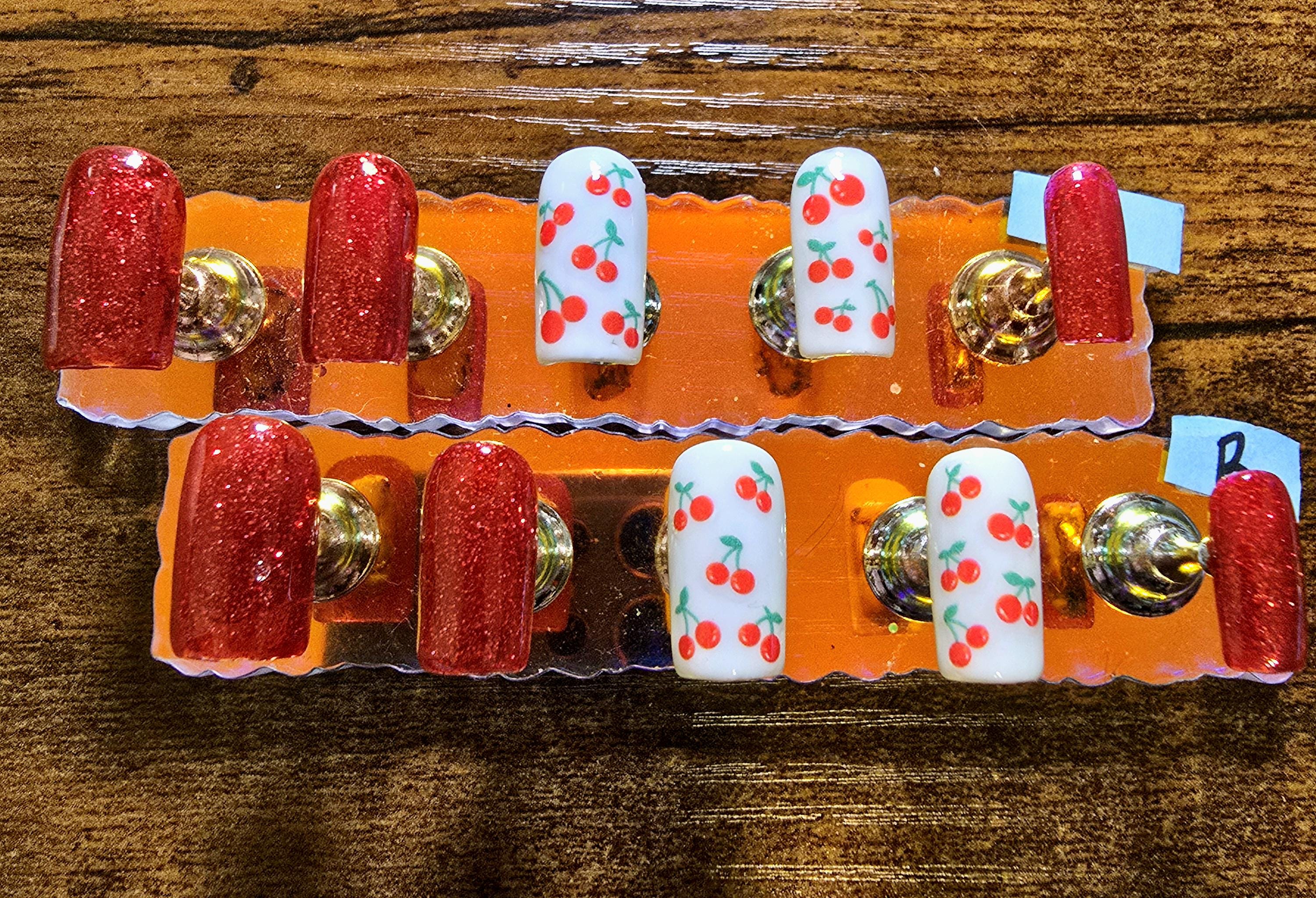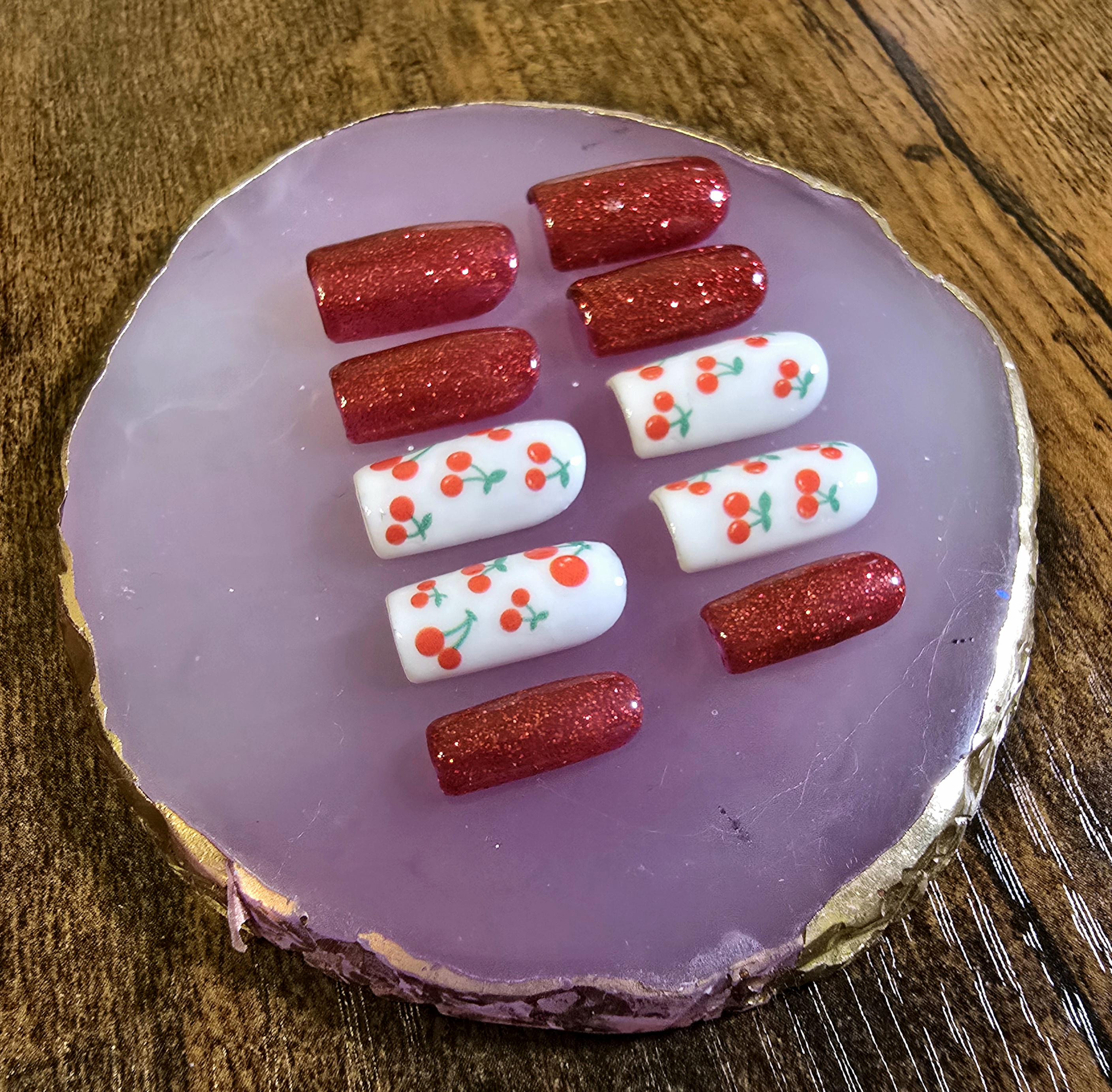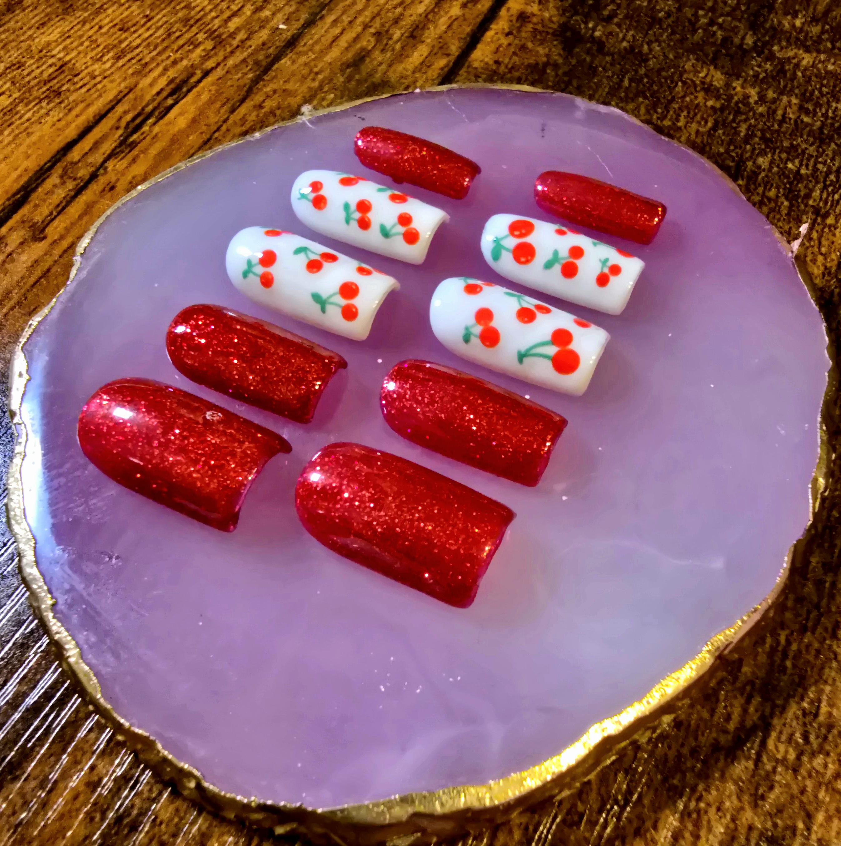 Handmade Summer Cherry Press On Nails | Red Gel Nail Set