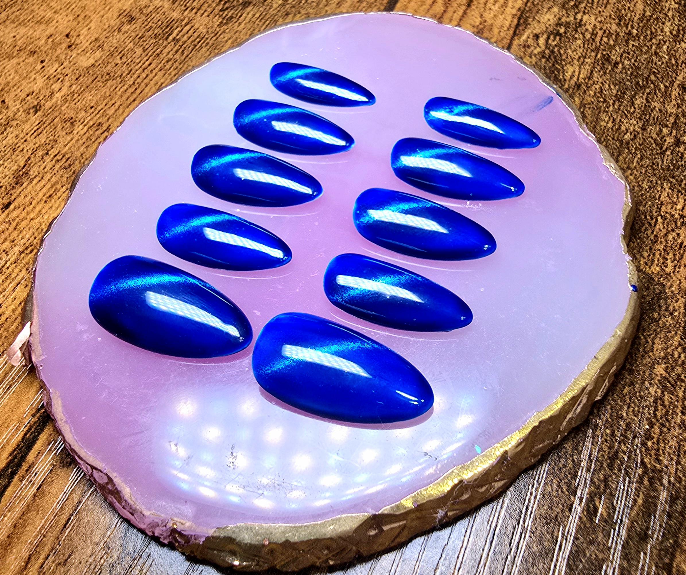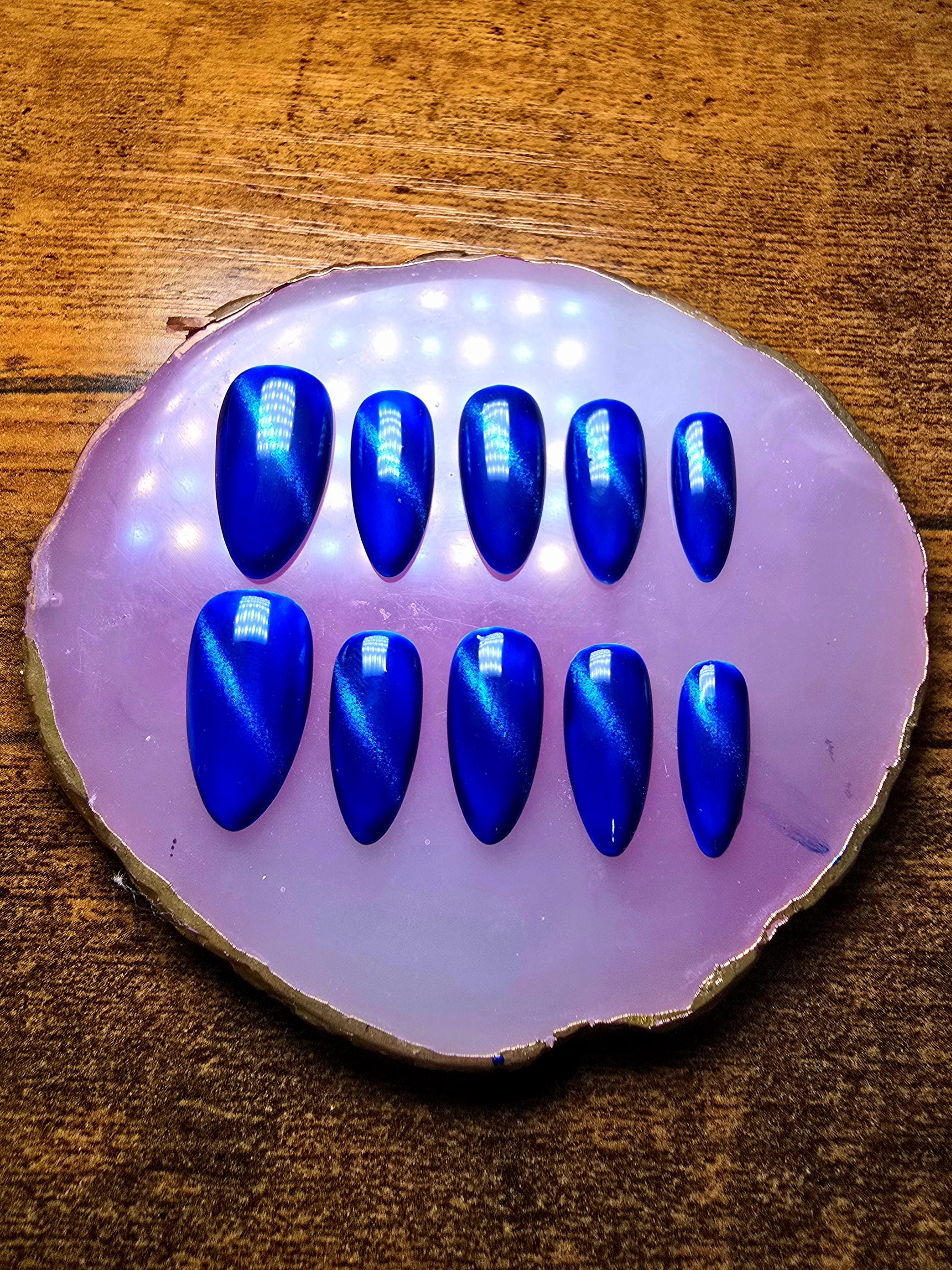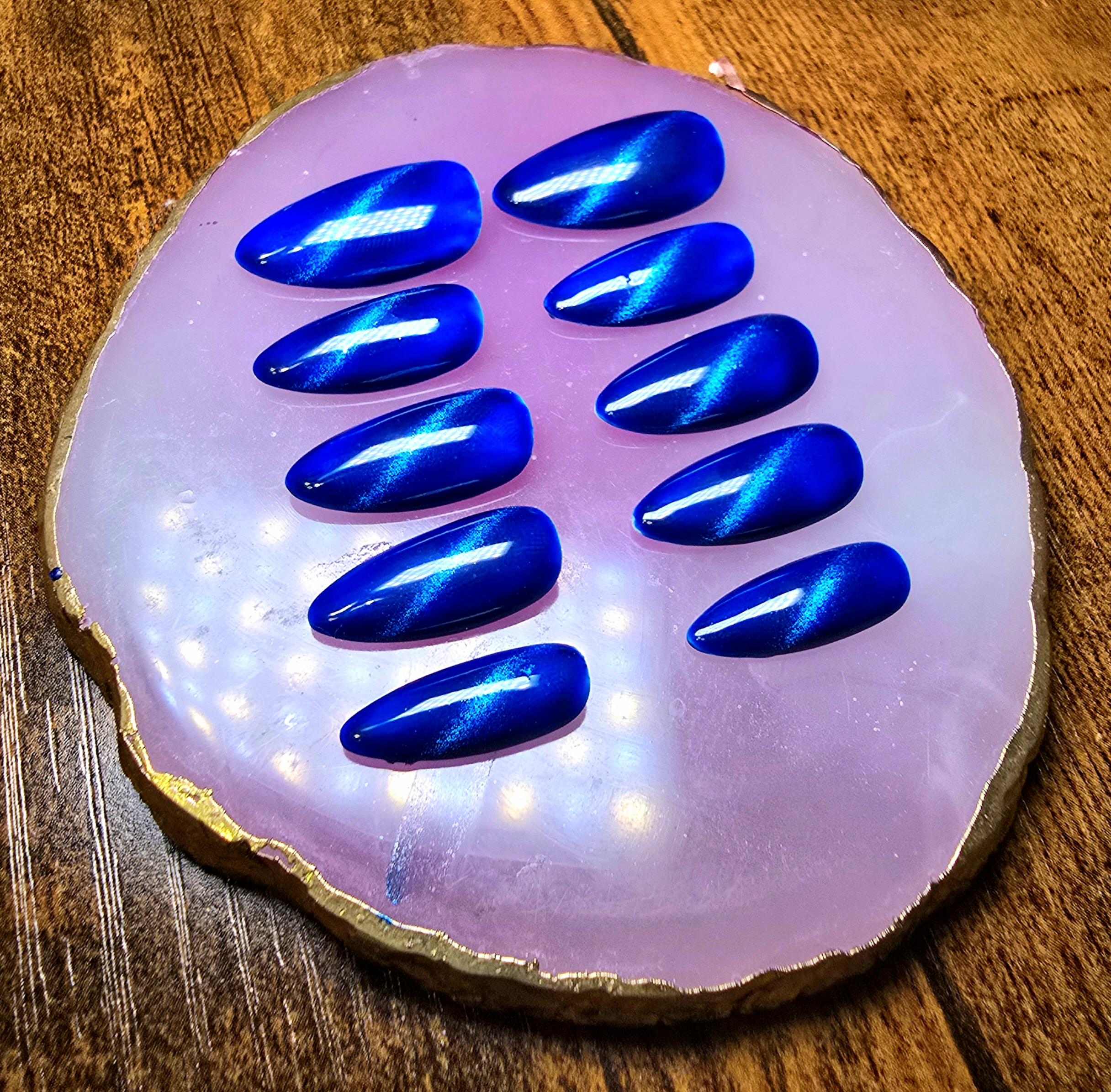 Blue Sapphire Cat Eye Press On Nails | Handmade Gel-X Nails