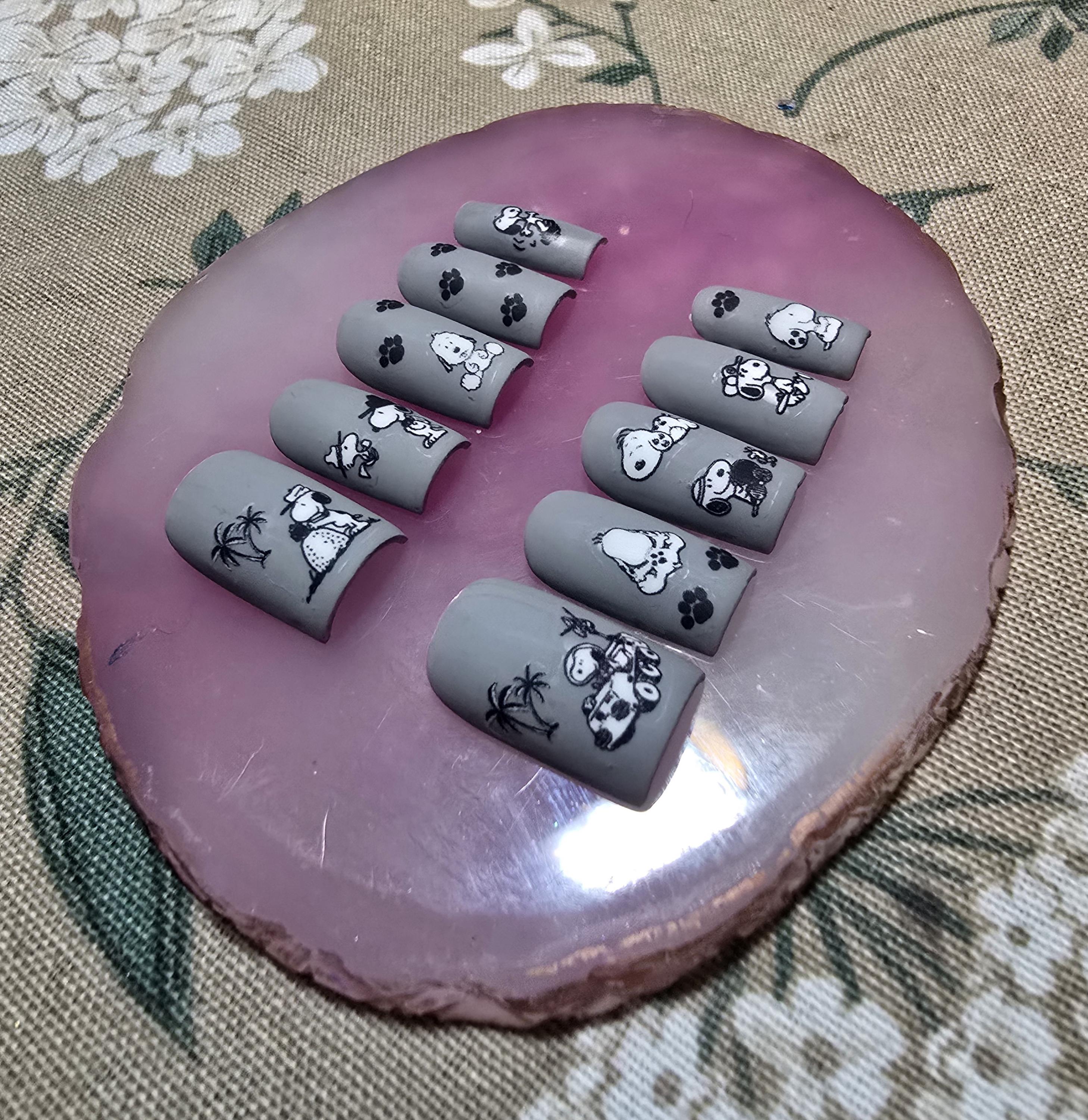 Item includes 10 handmade press on nails made using Après gel-X nails which are strong and won't bend. Gel polish is used ensuring longevity. These press on nails are reusable if taken care of and gently removed. If you are unsure of your nail size I recommend buying one of my sizing kits. If you need a custom size please put your size in the personalization box or message me. For hygienic reasons I won't be accepting returns. Please be aware colors might differ slightly depending on screen viewing on. PLEASE NOTE: Charms and/or decals may differ slightly depending on stock. A MANICURE SET IS INCLUDED WITH EACH ORDER FOR EASY APPLICATION.
