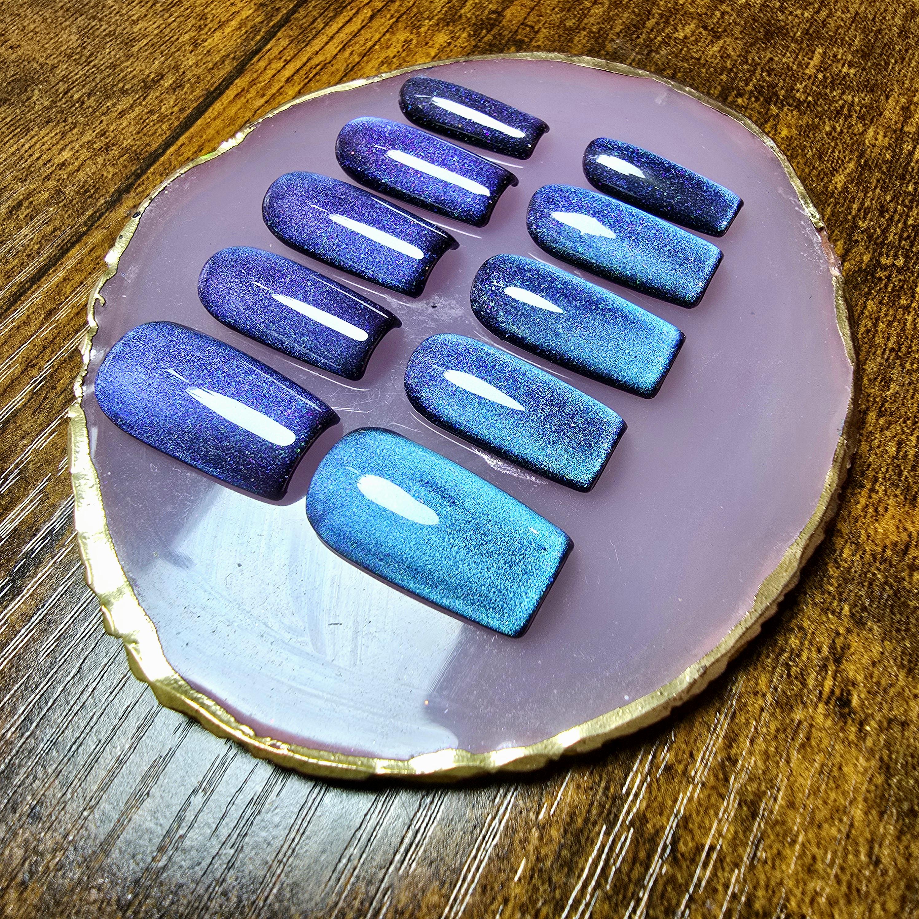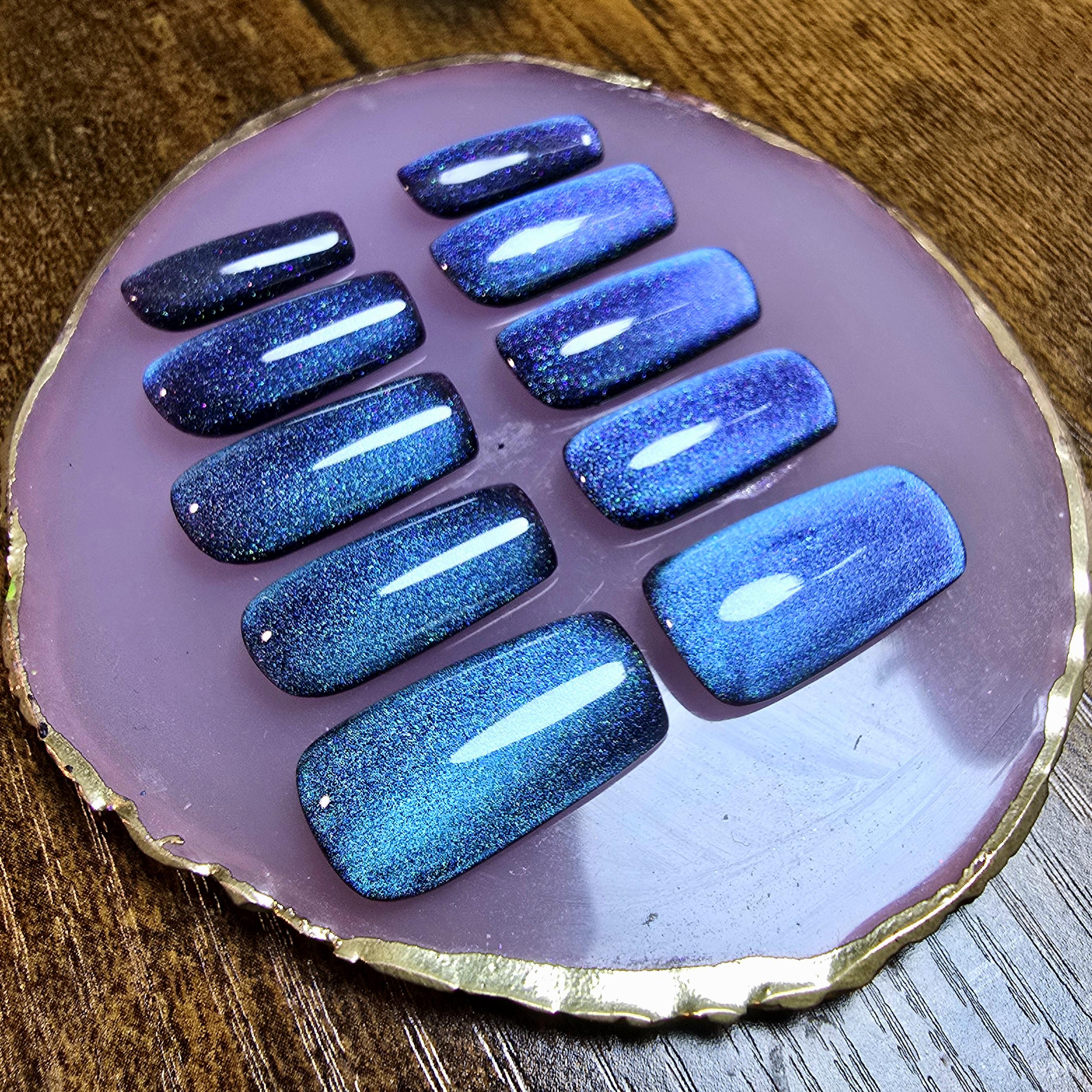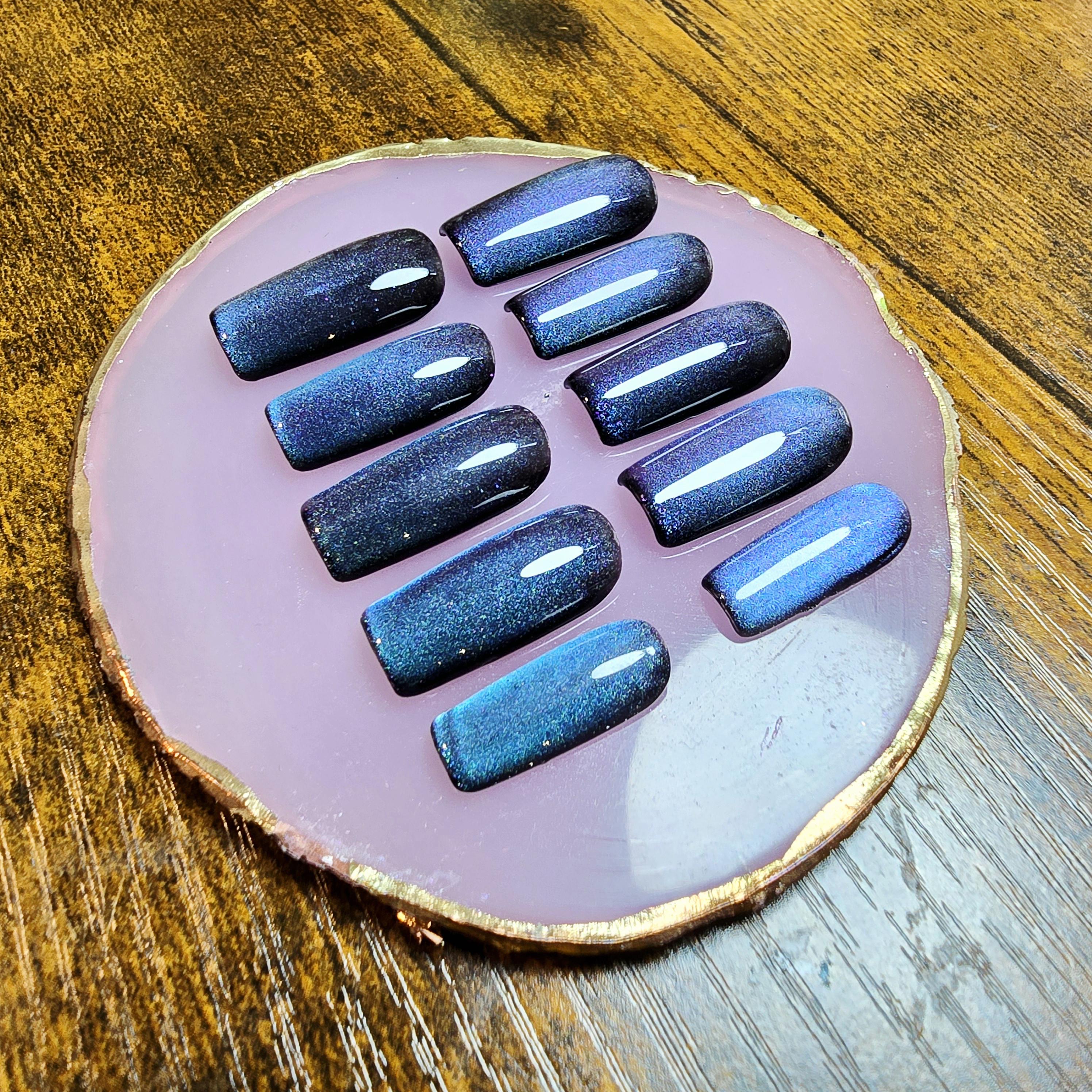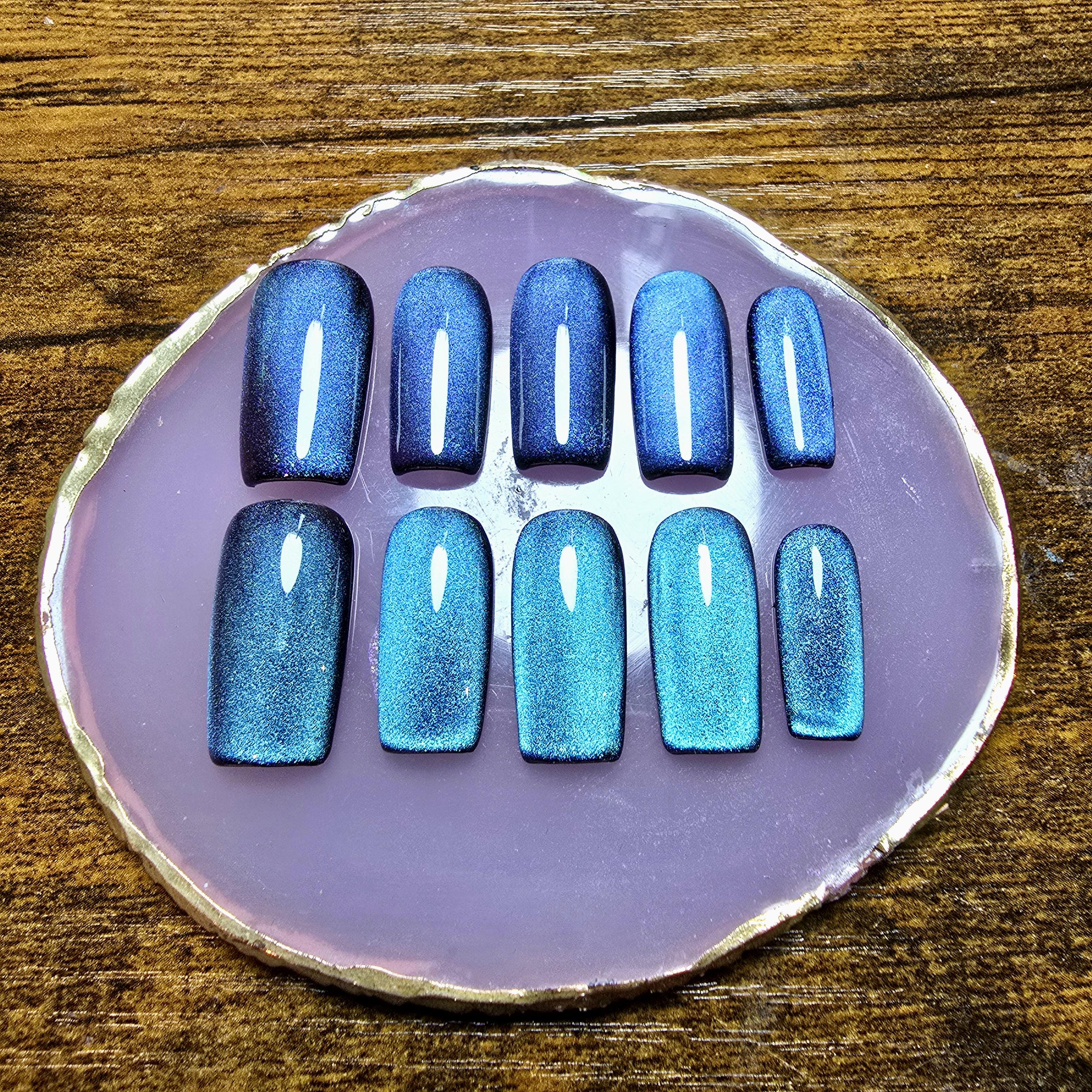 Item includes 10 handmade press on nails made using Après gel-X nails which are strong and won't bend. Gel polish is used ensuring longevity. These press on nails are reusable if taken care of and gently removed. If you are unsure of your nail size I recommend buying one of my sizing kits. If you need a custom size please put your size in the personalization box or message me. For hygienic reasons I won't be accepting returns. Please be aware colors might differ slightly depending on screen viewing on. PLEASE NOTE: Charms and/or decals may differ slightly depending on stock. A MANICURE SET IS INCLUDED WITH EACH ORDER FOR EASY APPLICATION.