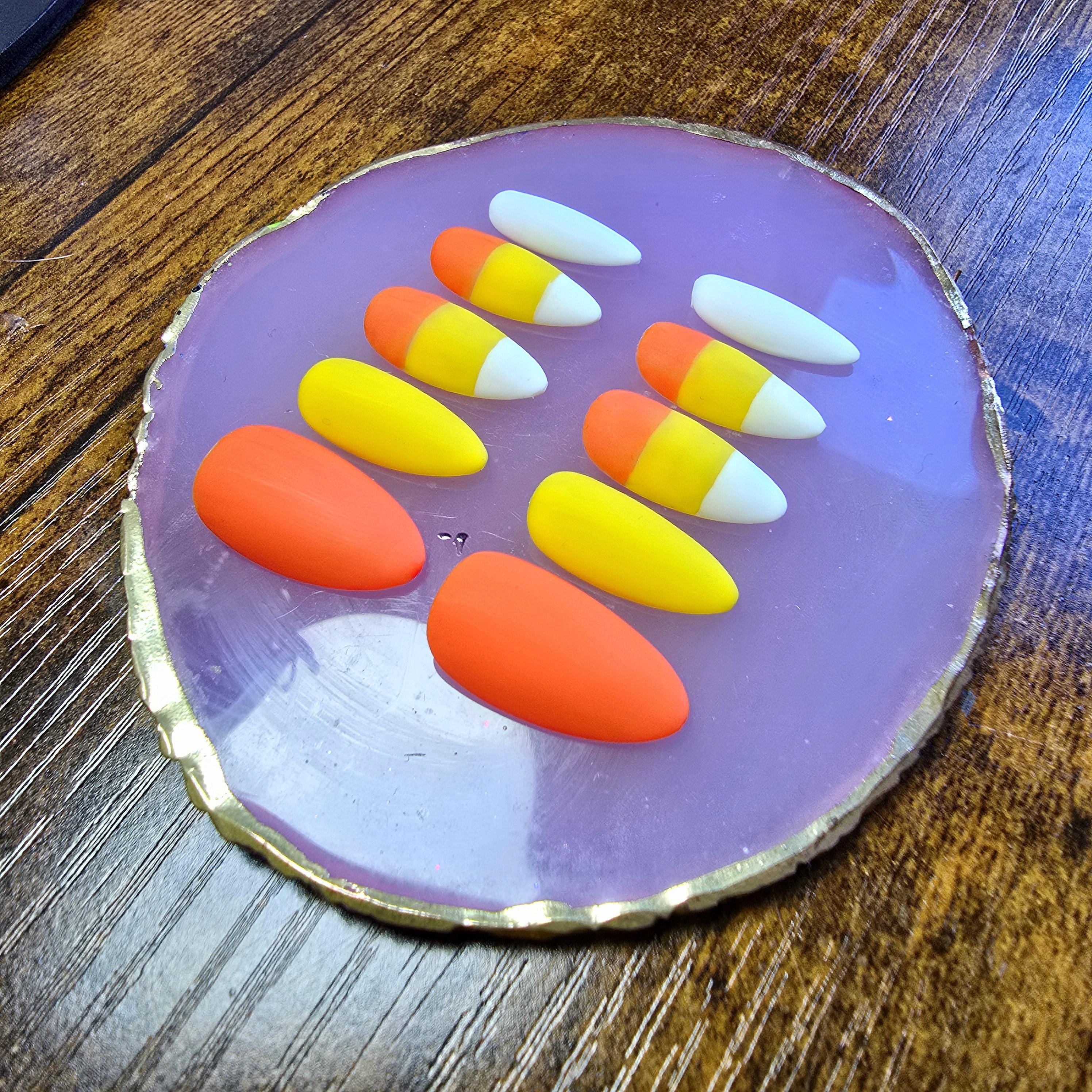 Item includes 10 handmade press on nails made using Après gel-X nails which are strong and won't bend. Gel polish is used ensuring longevity. These press on nails are reusable if taken care of and gently removed. If you are unsure of your nail size I recommend buying one of my sizing kits. If you need a custom size please put your size in the personalization box or message me. For hygienic reasons I won't be accepting returns. Please be aware colors might differ slightly depending on screen viewing on. PLEASE NOTE: Charms and/or decals may differ slightly depending on stock. A MANICURE SET IS INCLUDED WITH EACH ORDER FOR EASY APPLICATION.