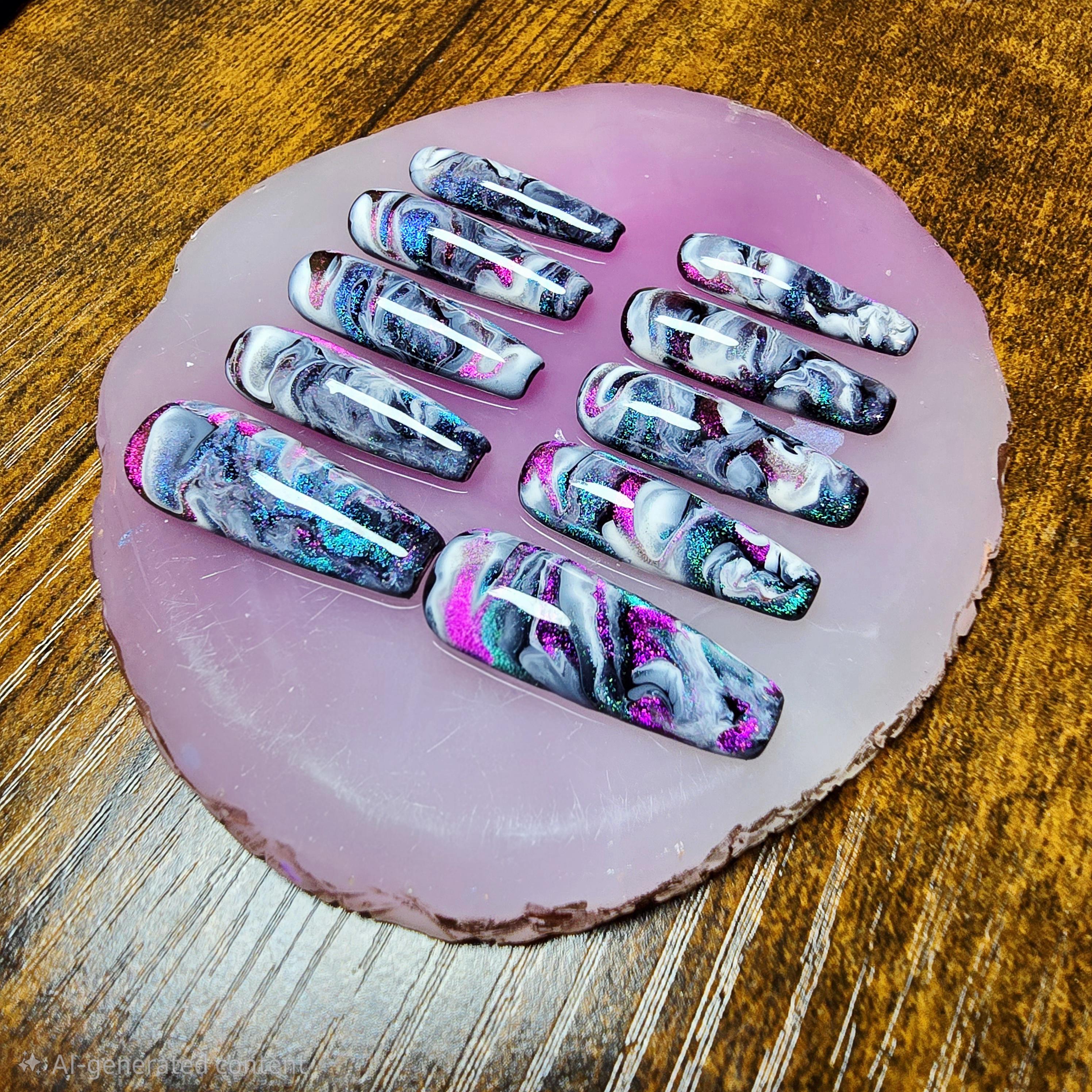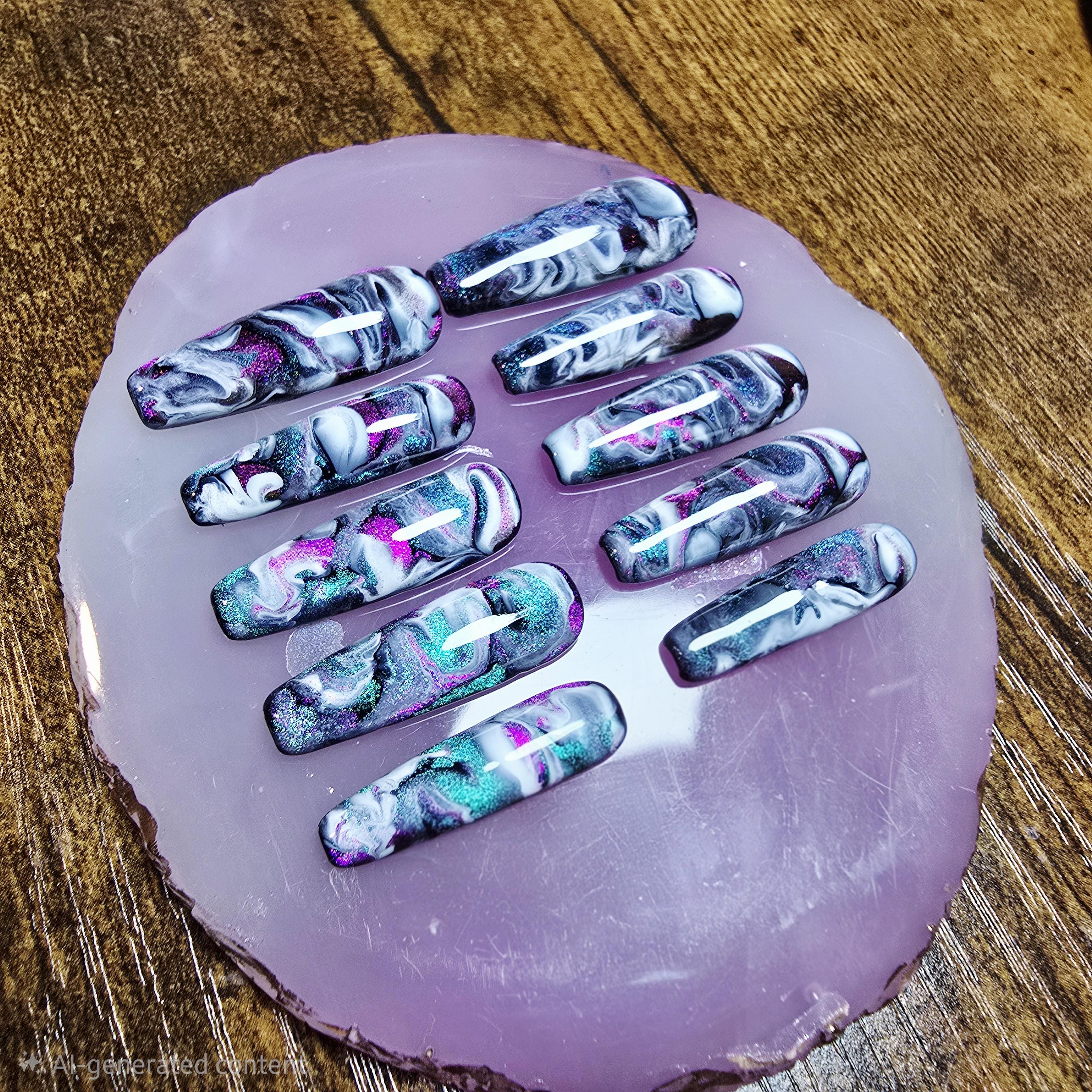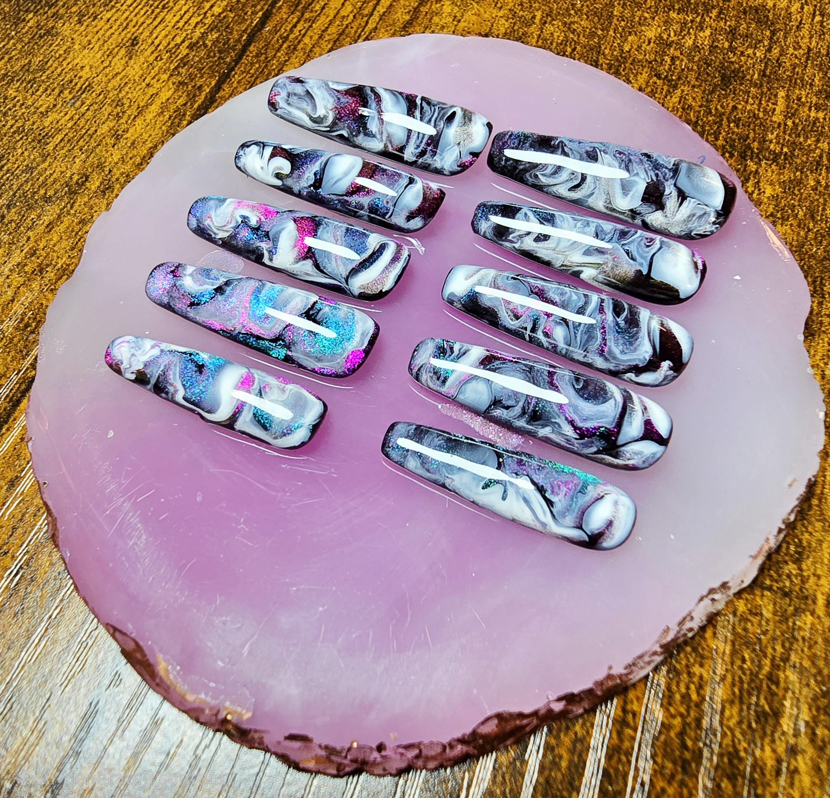 Item includes 10 handmade press on nails made using Après gel-X nails which are strong and won't bend. Gel polish is used ensuring longevity. These press on nails are reusable if taken care of and gently removed. If you are unsure of your nail size I recommend buying one of my sizing kits. If you need a custom size please put your size in the personalization box or message me. For hygienic reasons I won't be accepting returns. Please be aware colors might differ slightly depending on screen viewing on. PLEASE NOTE: Charms and/or decals may differ slightly depending on stock. A MANICURE SET IS INCLUDED WITH EACH ORDER FOR EASY APPLICATION.