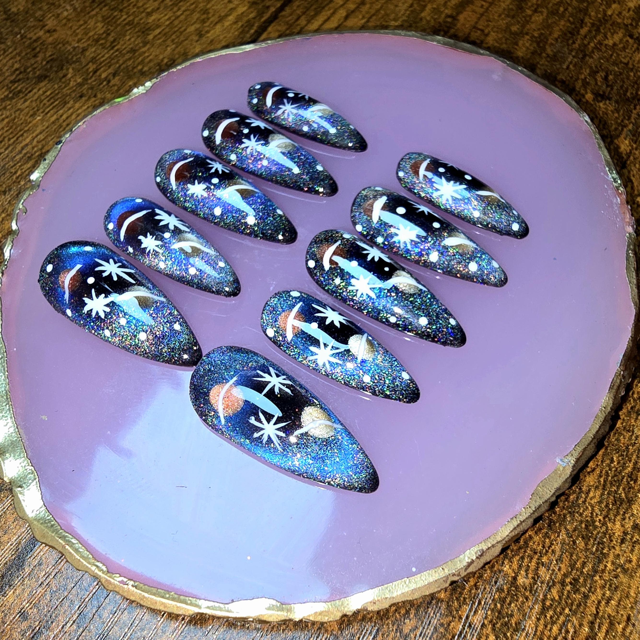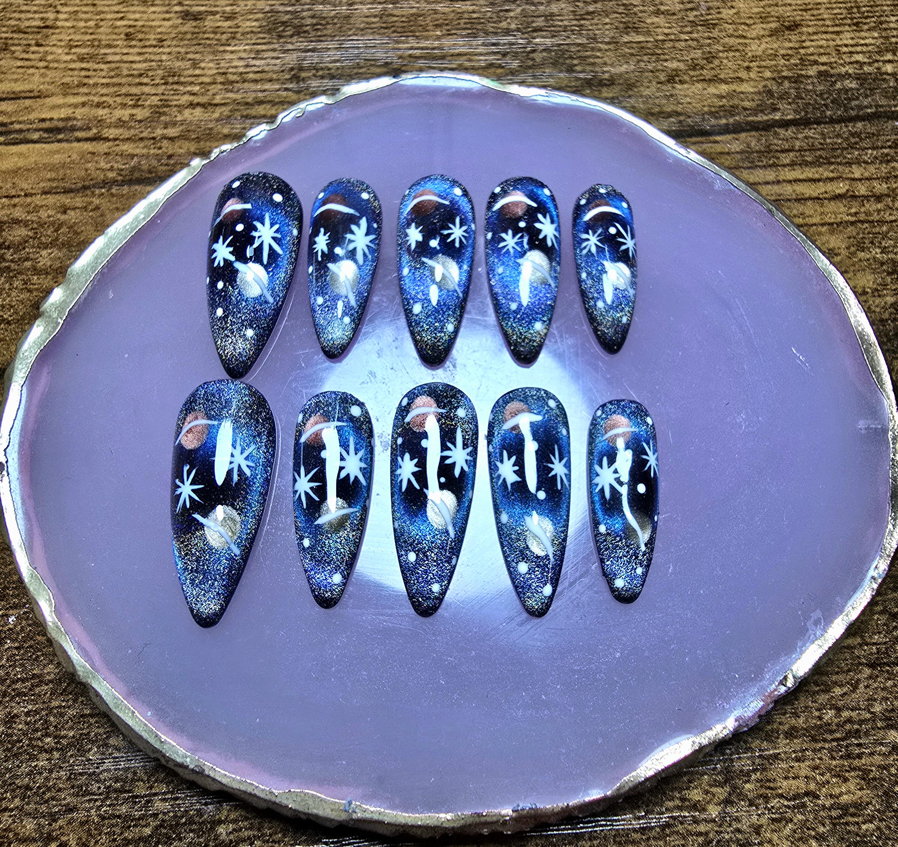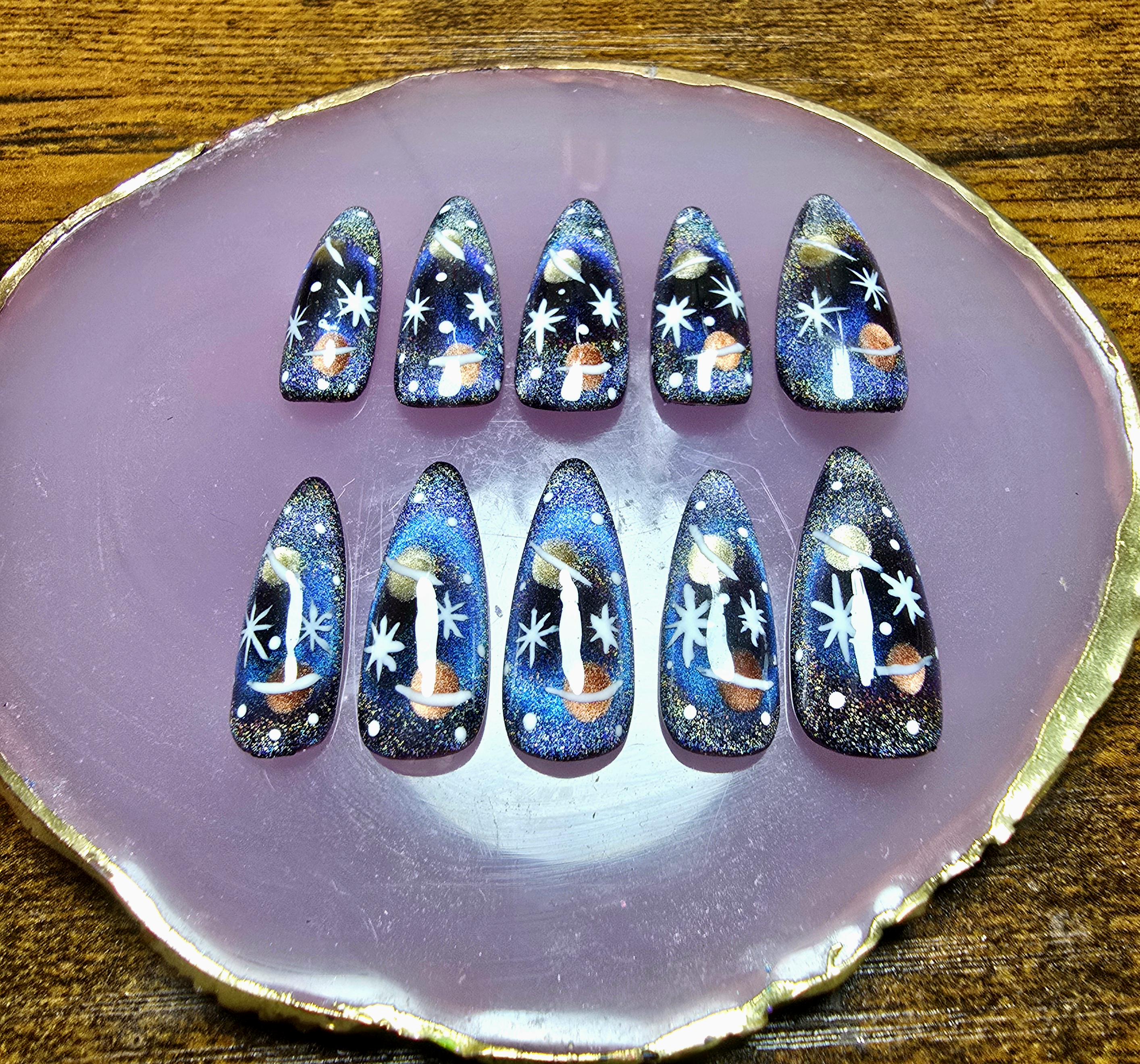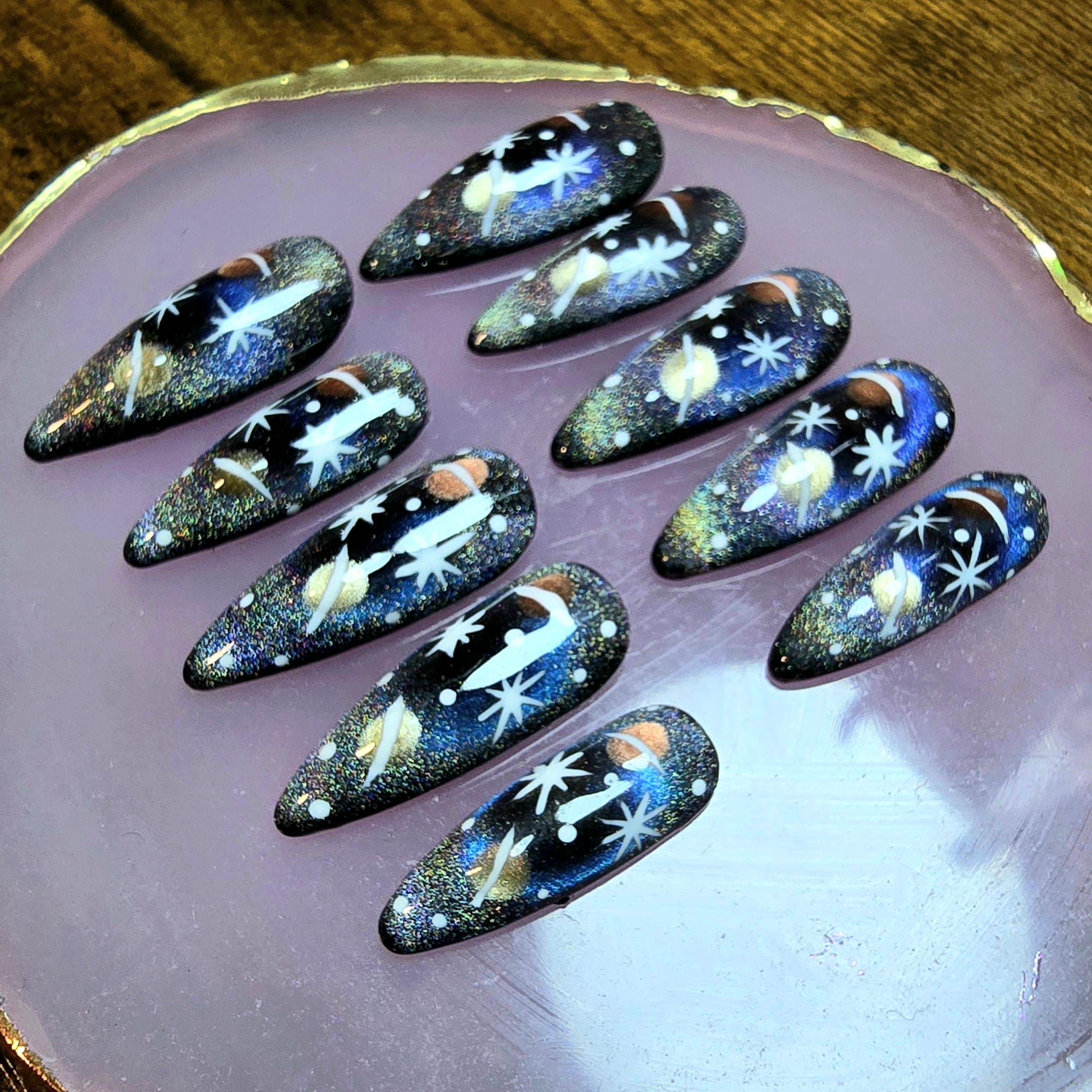 Handmade Space Cat Eye Press On Nails | Galaxy Nail Set