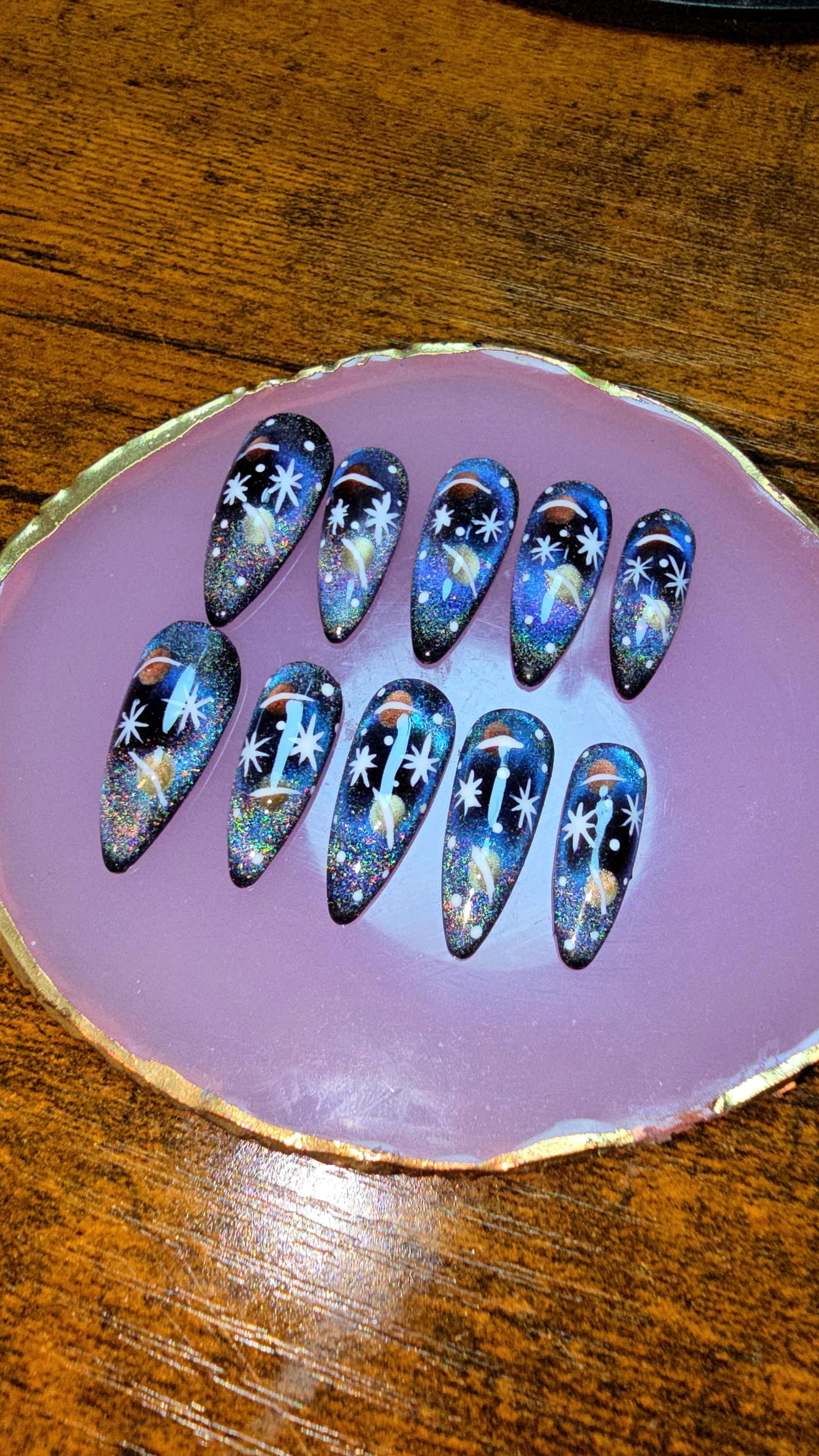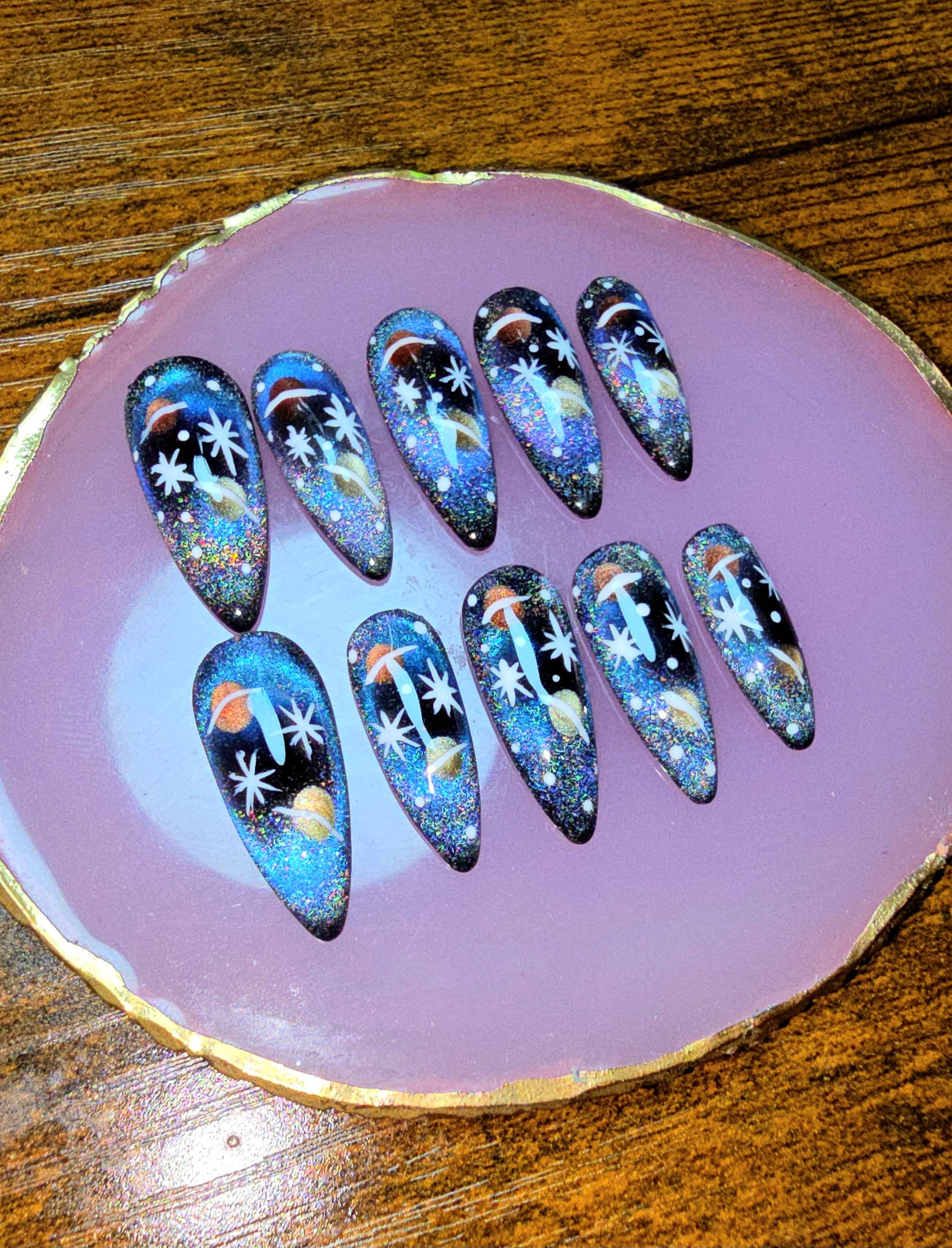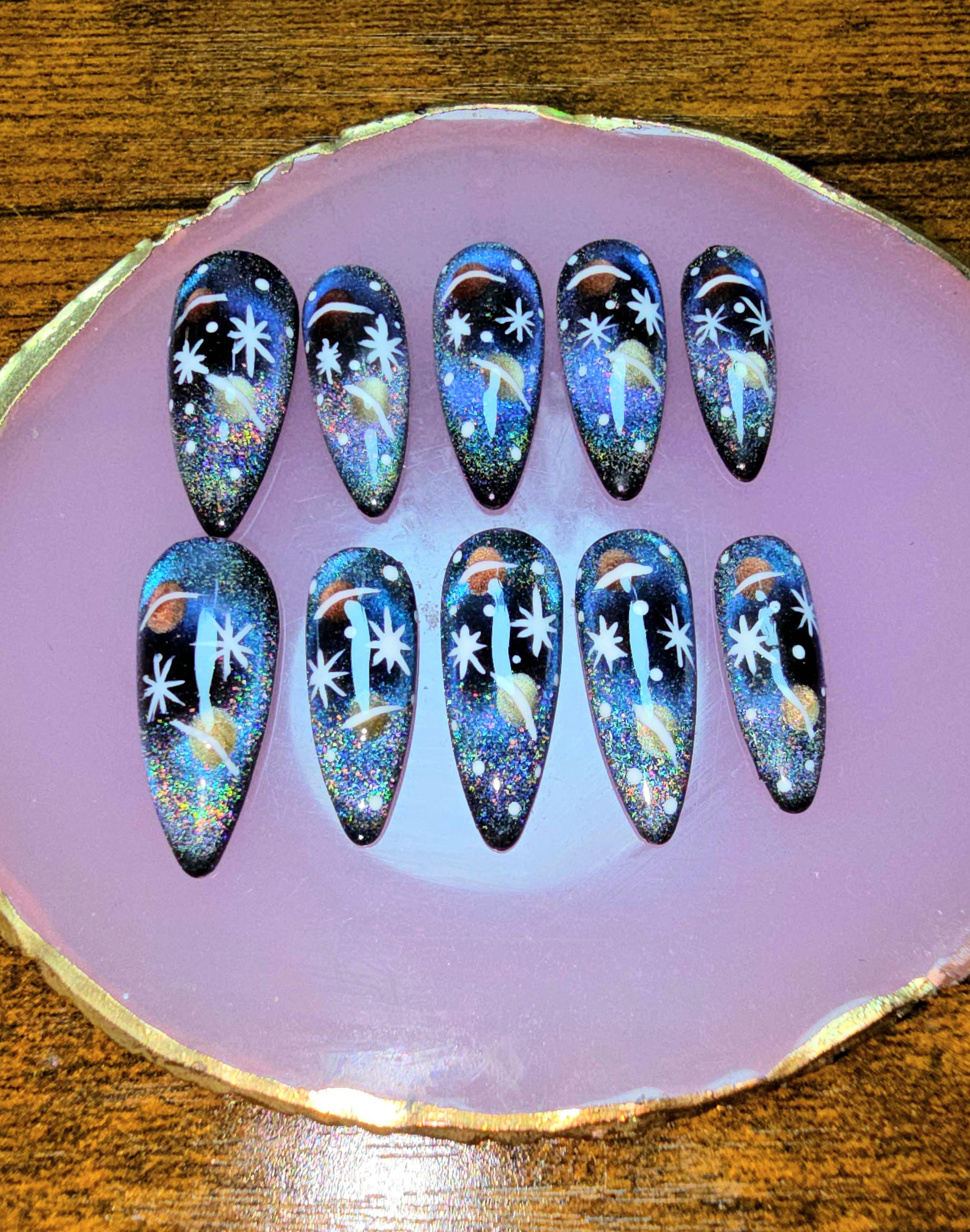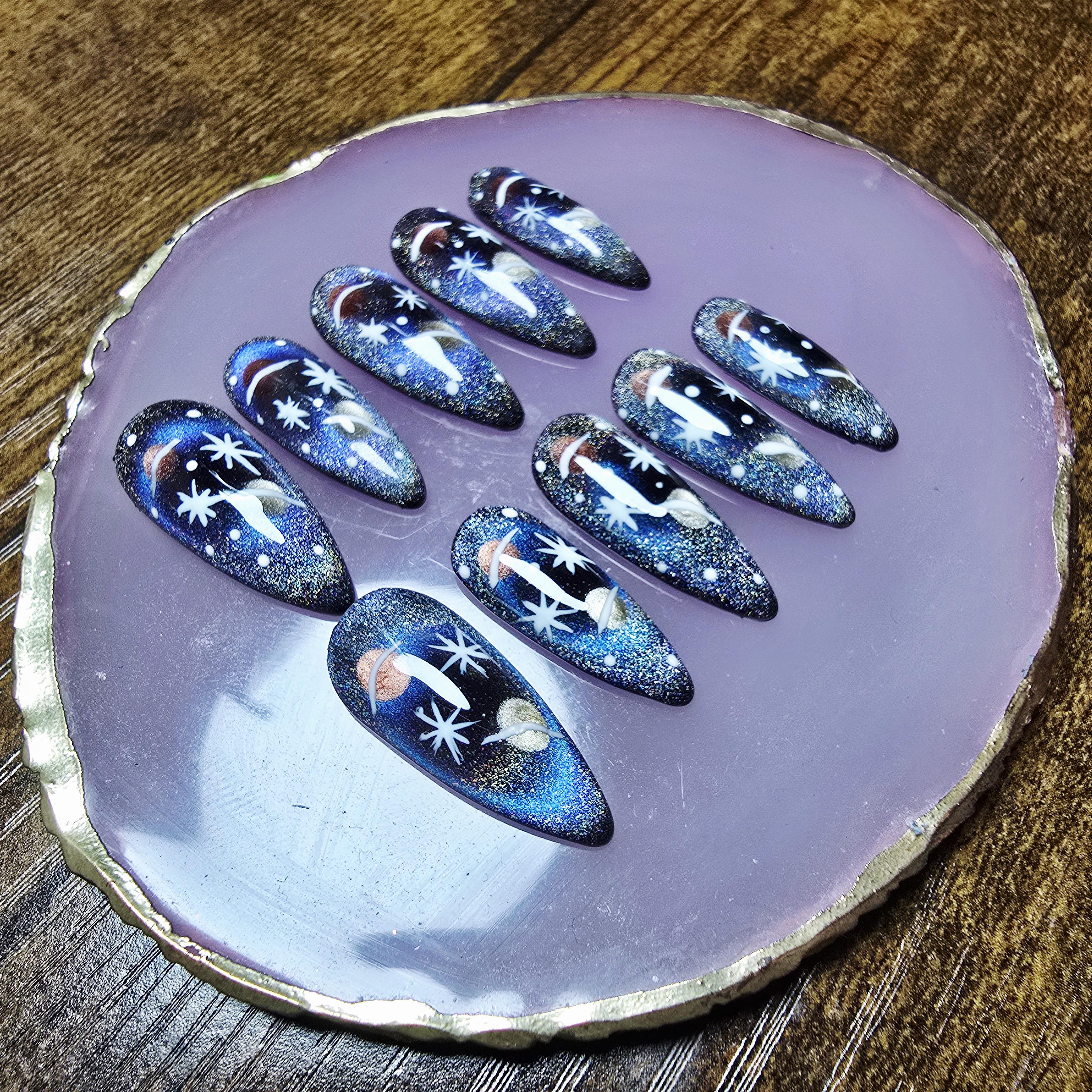 Handmade Space Cat Eye Press On Nails | Galaxy Nail Set