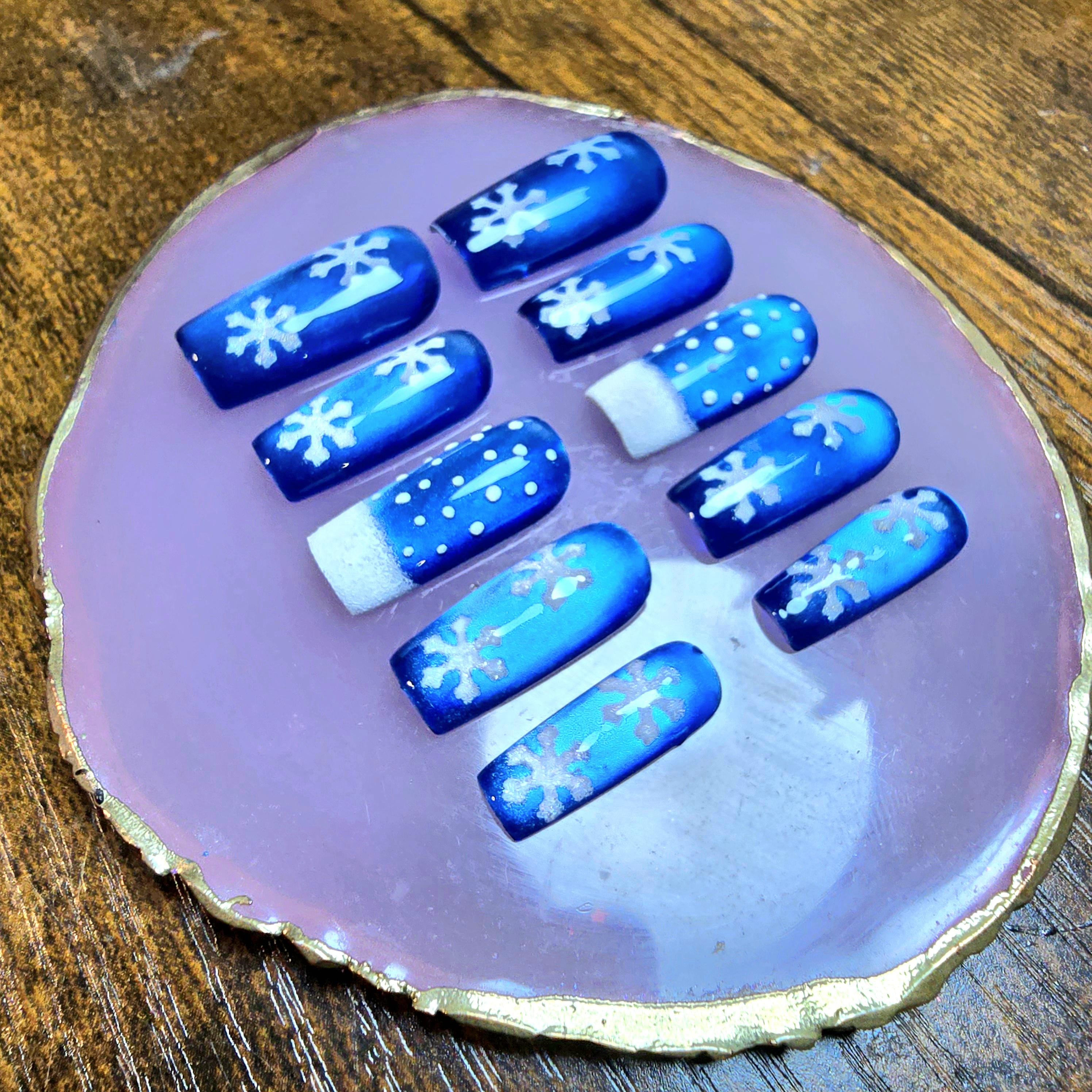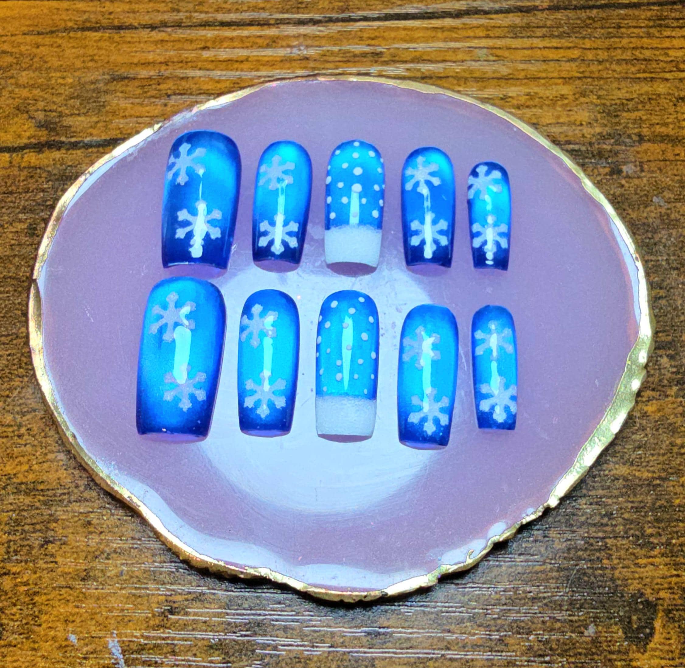 Item includes 10 handmade press on nails made using Après gel-X nails which are strong and won't bend. Gel polish is used ensuring longevity. These press on nails are reusable if taken care of and gently removed. If you are unsure of your nail size I recommend buying one of my sizing kits. If you need a custom size please put your size in the personalization box or message me. For hygienic reasons I won't be accepting returns. Please be aware colors might differ slightly depending on screen viewing on. PLEASE NOTE: Charms and/or decals may differ slightly depending on stock. A MANICURE SET IS INCLUDED WITH EACH ORDER FOR EASY APPLICATION.